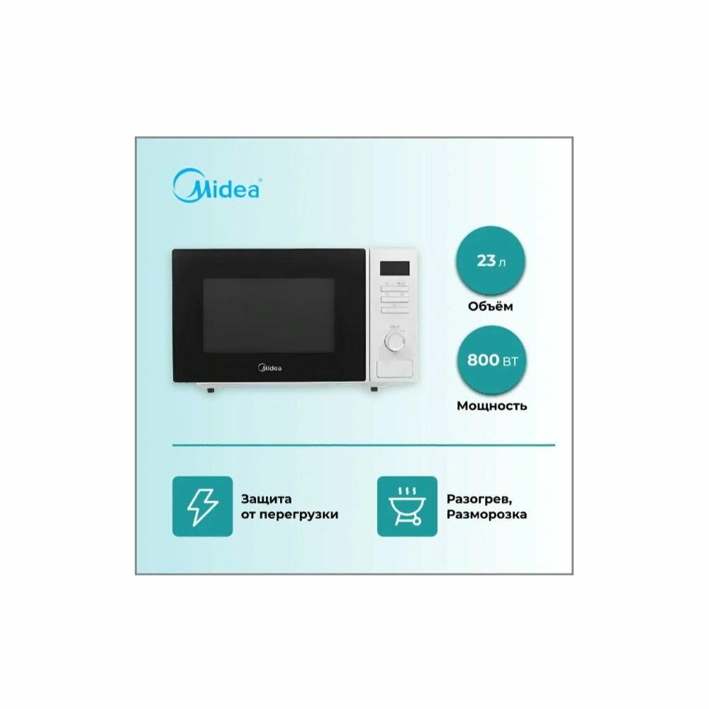 Микроволновая Печь Midea Am823s220-w 23л. Мощность 800Вт, Цвет белый