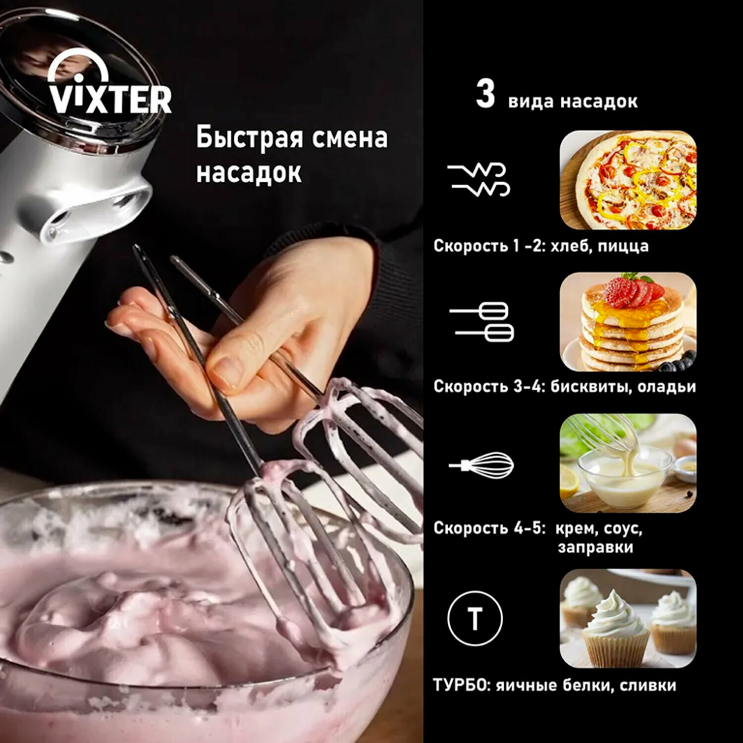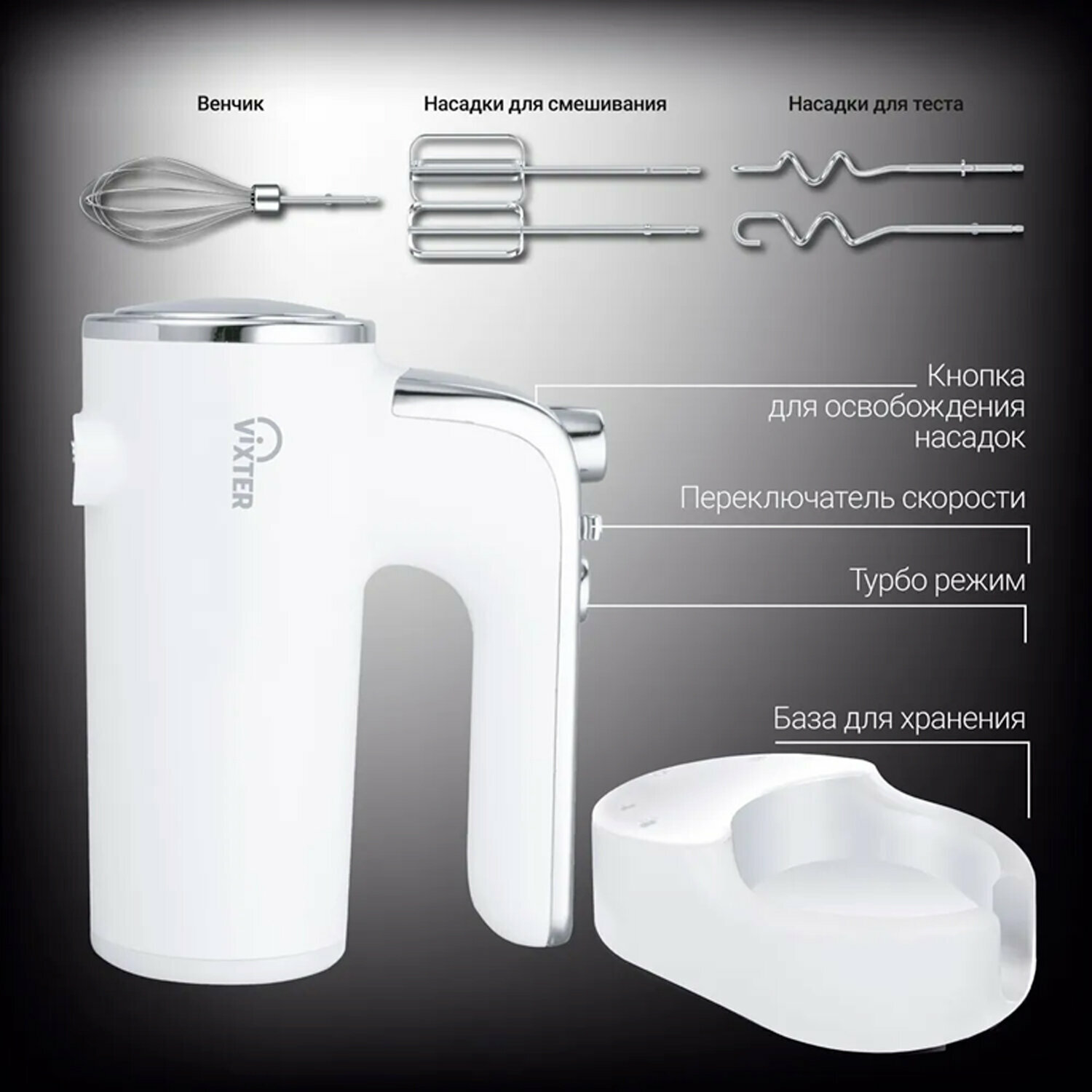 Миксер VIXTER VHM-3300, 700 Вт, 5 скоростей, 3 вида насадок, подставка, белый, 47840 интересное: