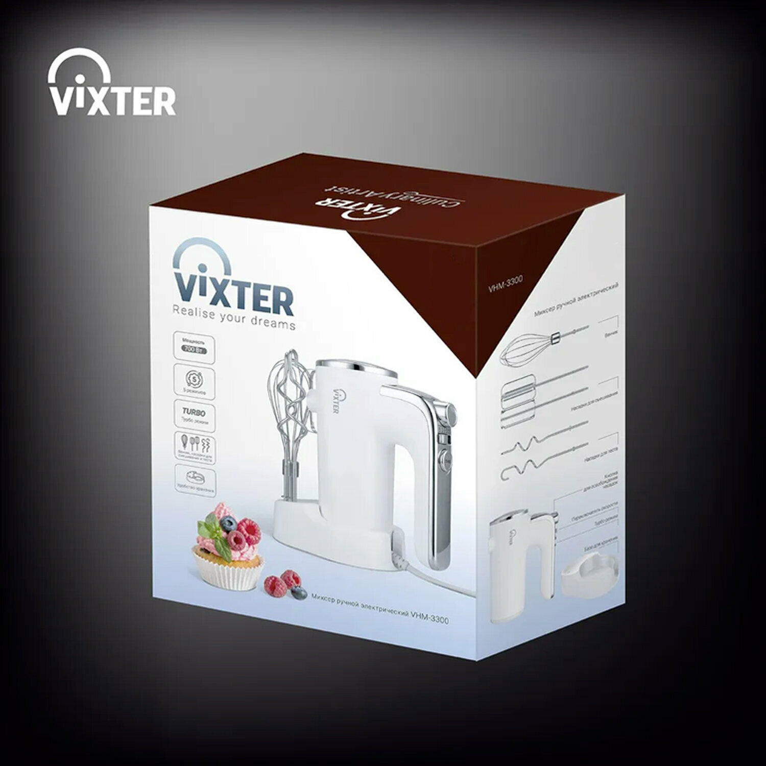 Купить Миксер VIXTER VHM-3300, 700 Вт, 5 скоростей, 3 вида насадок, подставка, белый, 47840