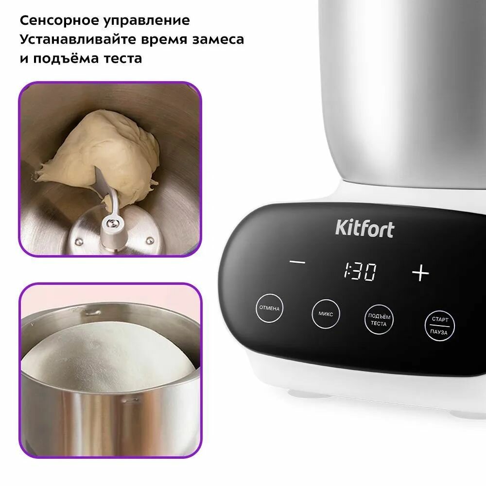Тестомесильная машина Kitfort КТ-3427, 3,5л чаша из нержавеющей стали, сенсорная панель управления
