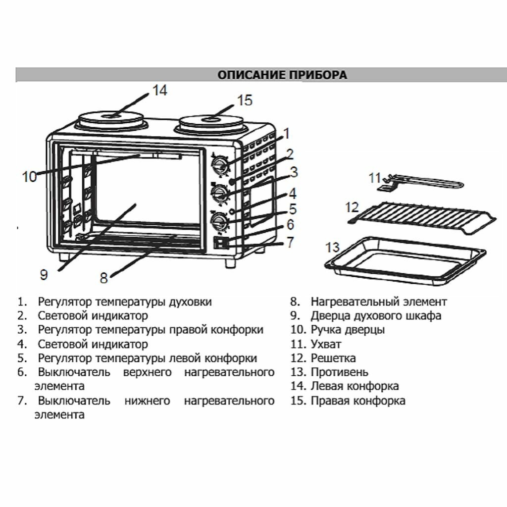 | Режимы | верхний нагрев / верхний+нижний нагрев / нижний нагрев |