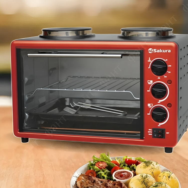 Купить Духовка электрическая мини печь Сакура Sakura SA-7027НВR, 21 литр, 2600 Вт, 2 конфорки с двумя конфорками (OL).