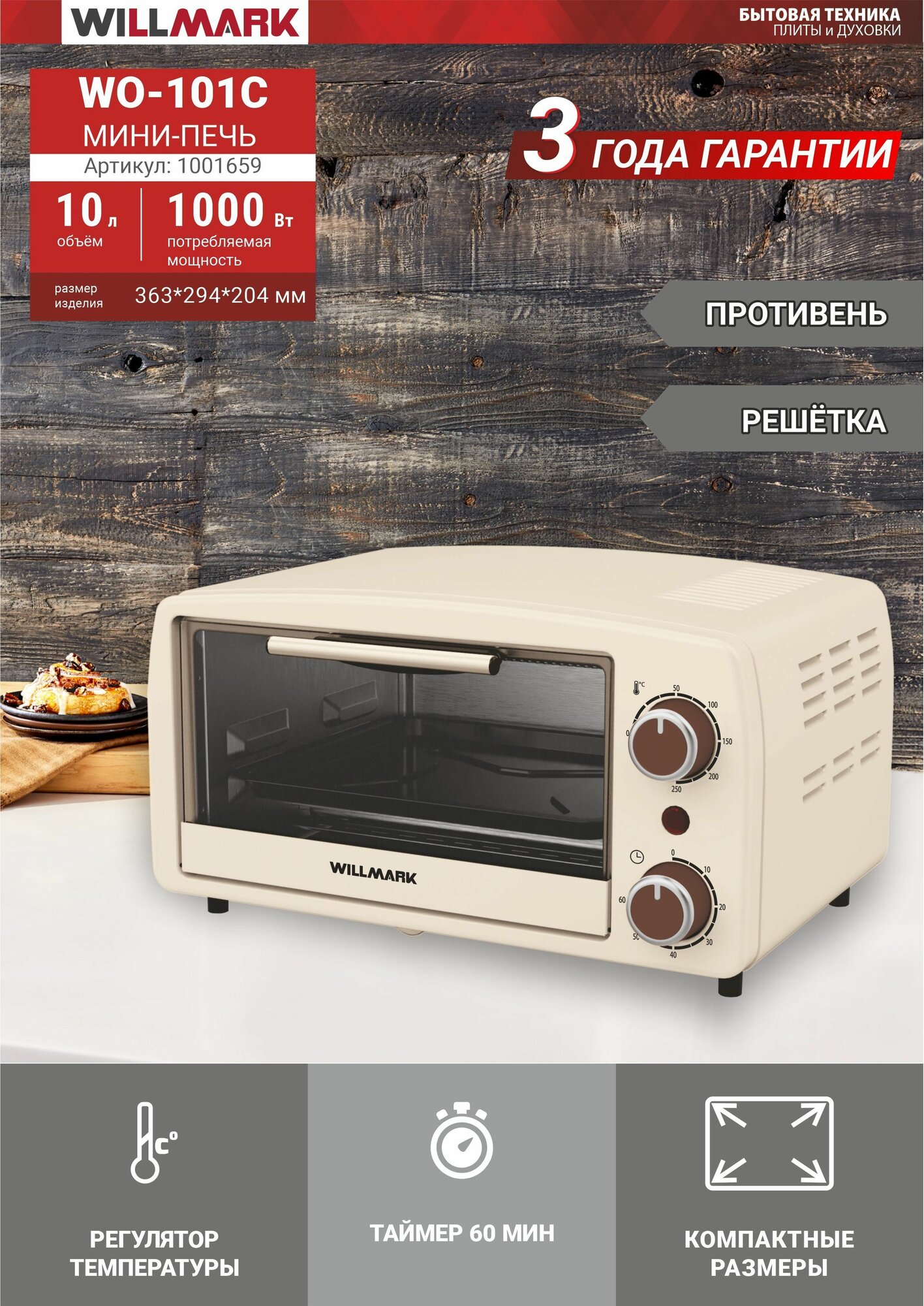 Мини-печь Willmark Wo-101c (10л, 1000Вт, противень, решетка, таймер, кремовый) . интересное:
