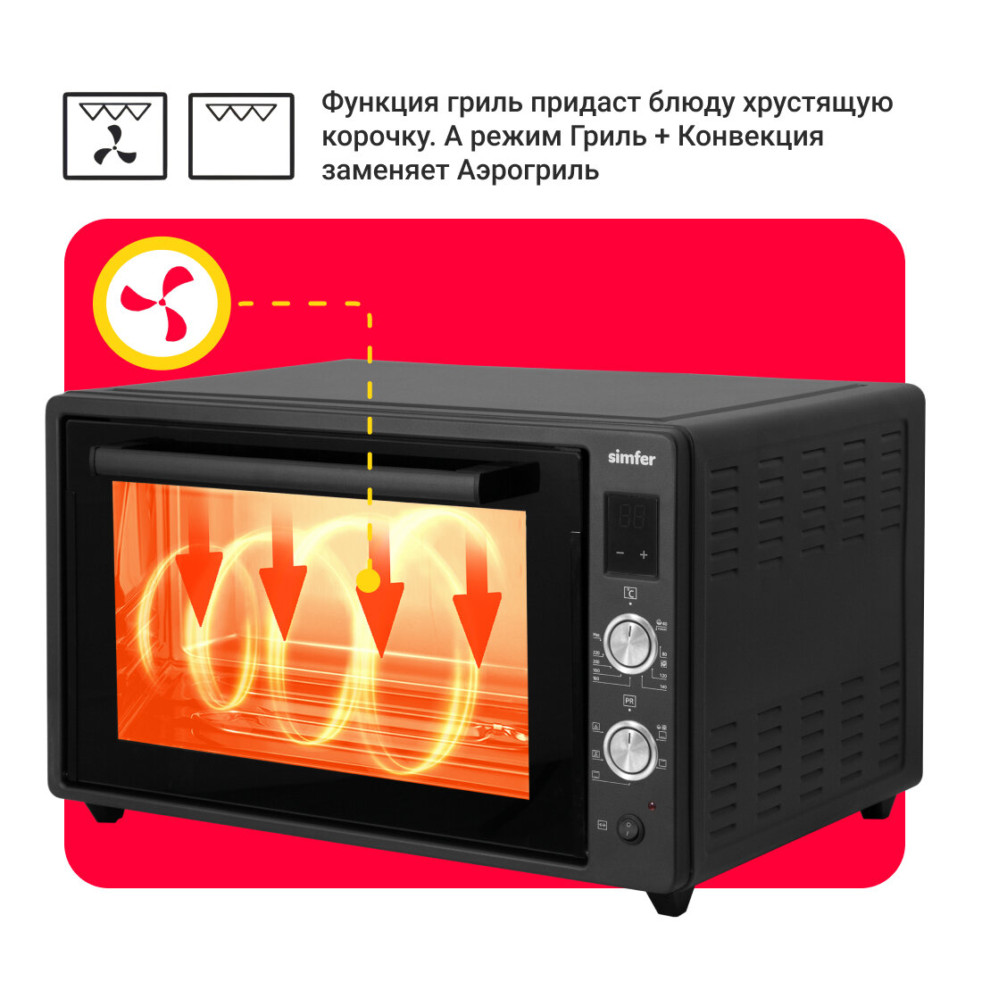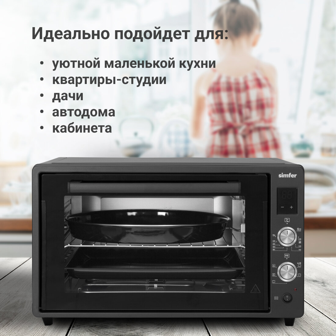 Мини-печь Simfer M7072 (6 режимов, конвекция, двойное стекло, цифровой дисплей, цвет черный)