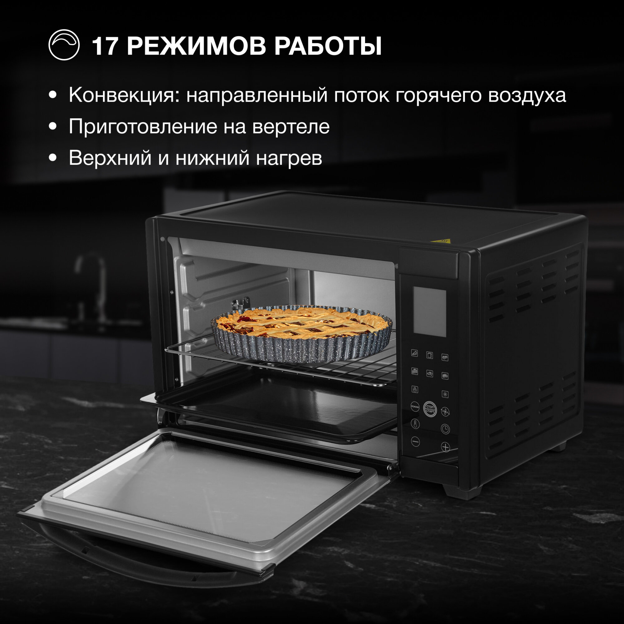 Мини-печь электрическая Hyundai MIO-HY097, черный, объем духовки 35 л, мощность 1600 Вт, 17 режимов работы с температурой от 50 до 230 С