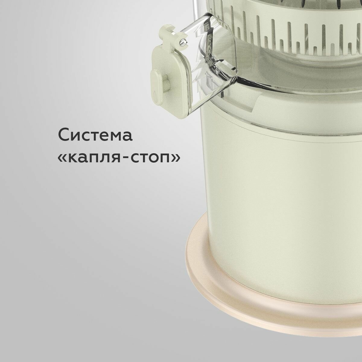 | Особенности | индикатор уровня сока / плавный запуск двигателя / реверс / система «капля-стоп» / система прямой подачи сока |
