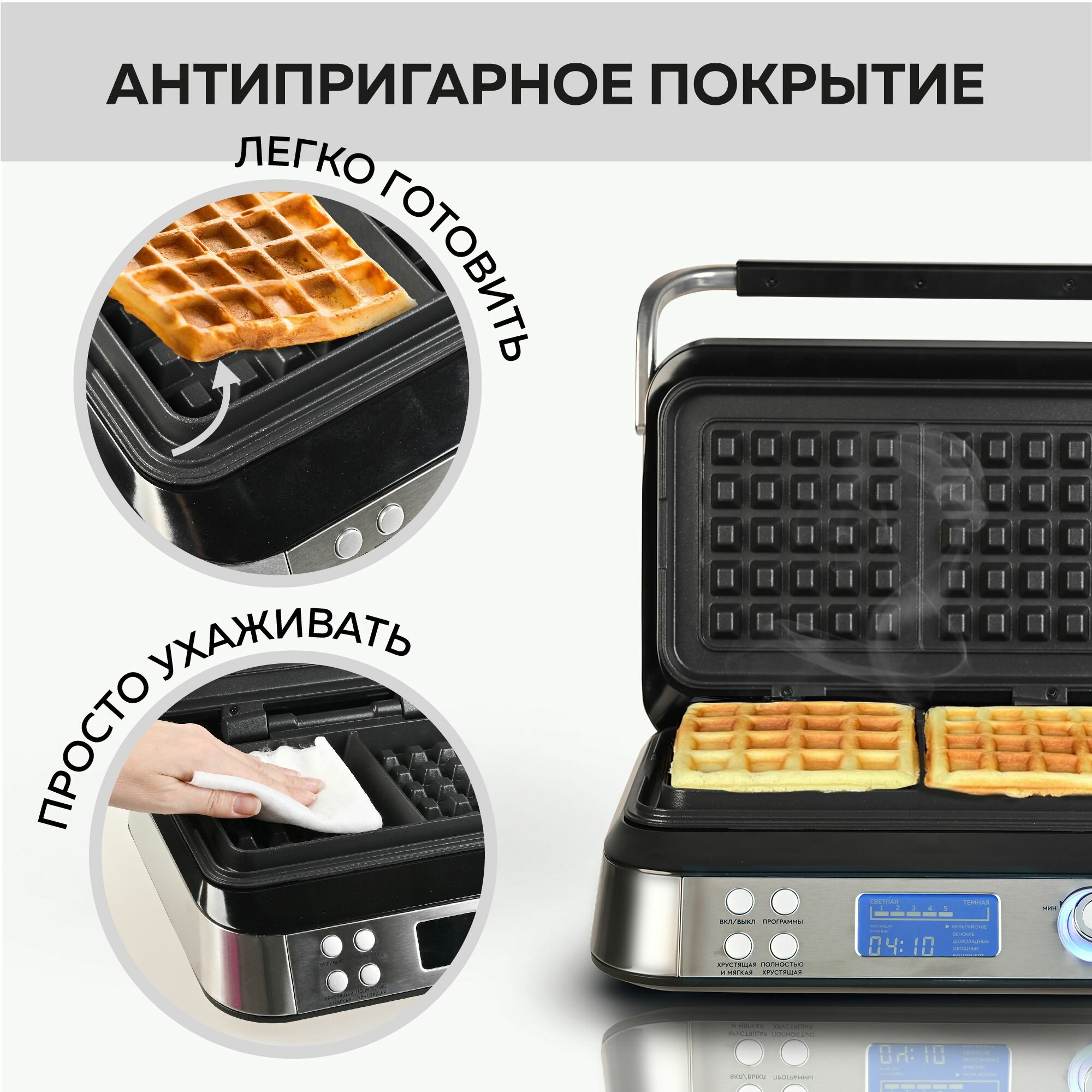 GFGRIL Электрическая вафельница GFW-050, 4 автопрограммы, 14 степеней поджаривания интересное: