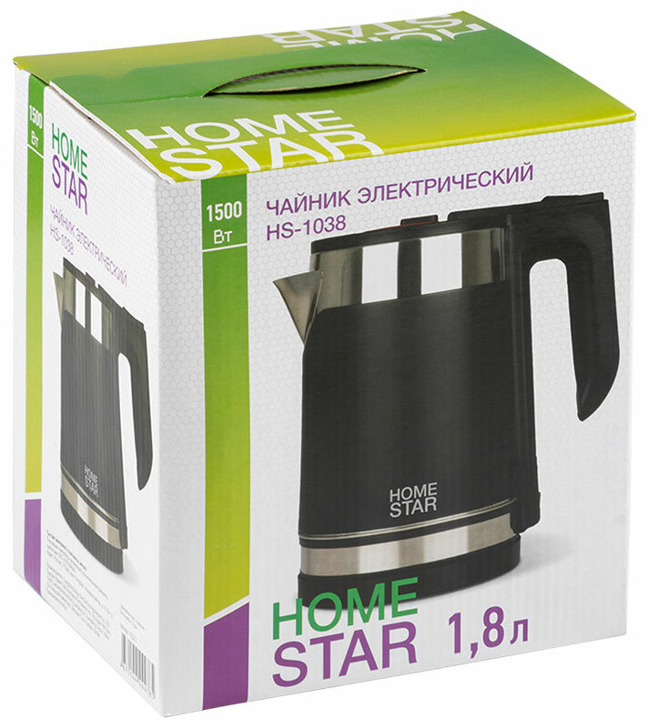 Чайник Homestar HS-1038 (1,8 л) черный, двойной корпус интересное: