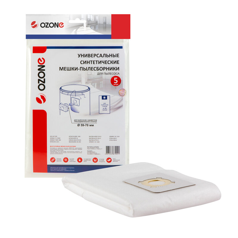 Мешки универсальные, 5 шт., синтетические, не боятся мокрой пыли, до 36 литров, диаметр фланца 59-70 мм, MXT-UN20/5 интересное: