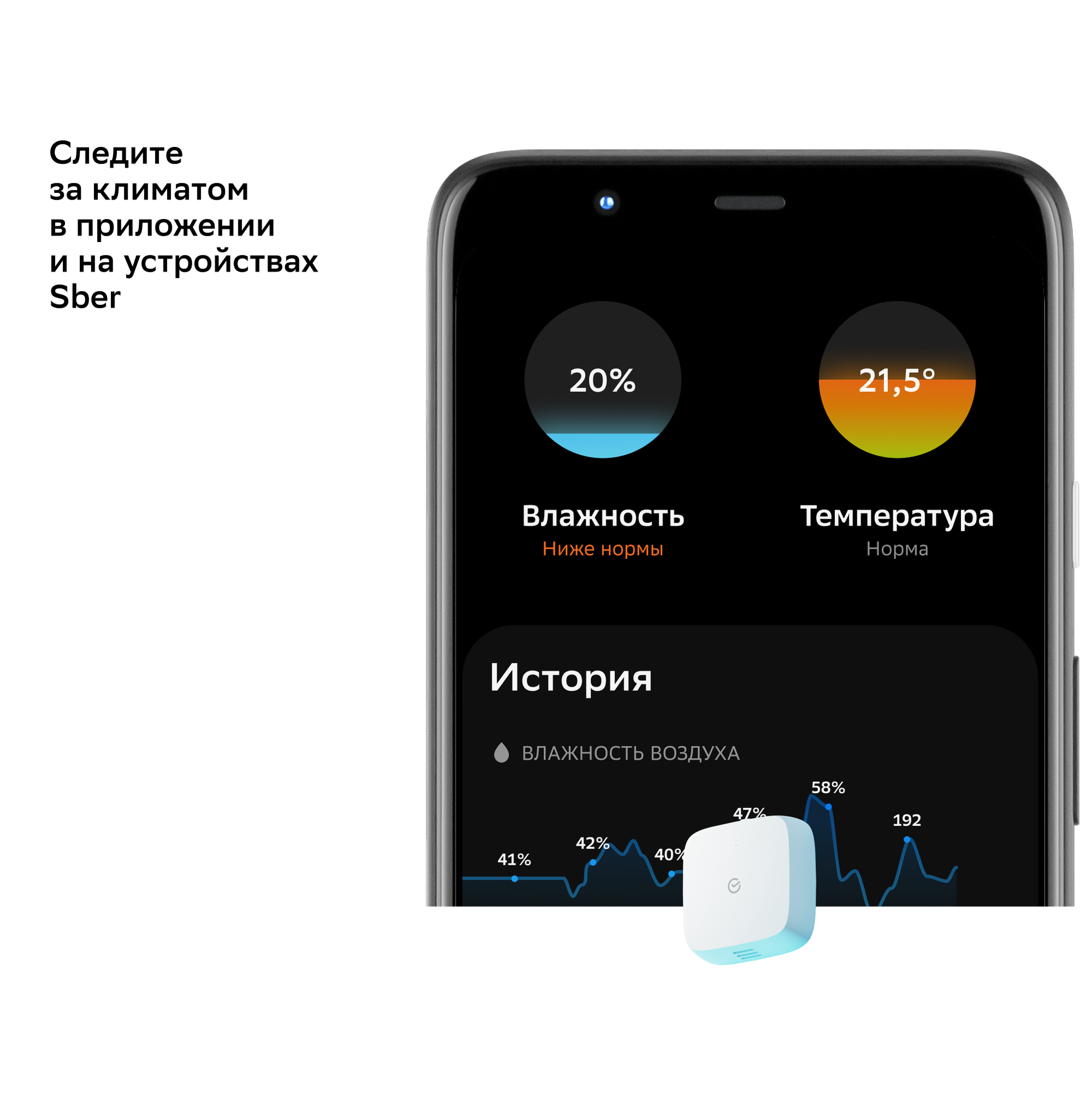 Датчик температуры и влажности SBER SBDV-00079, белый