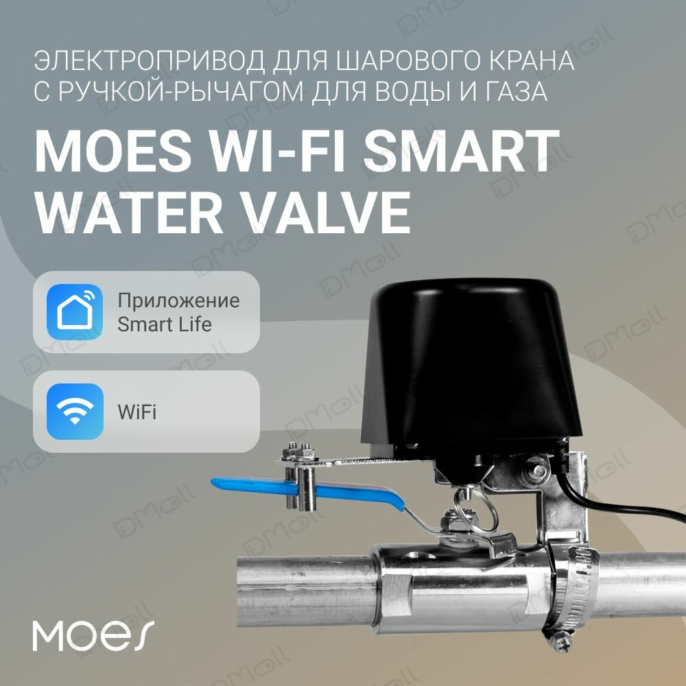 Электропривод для шарового крана с ручкой-рычагом для воды и газа MOES WiFi Smart Water Valve WV-LZ-BK интересное:
