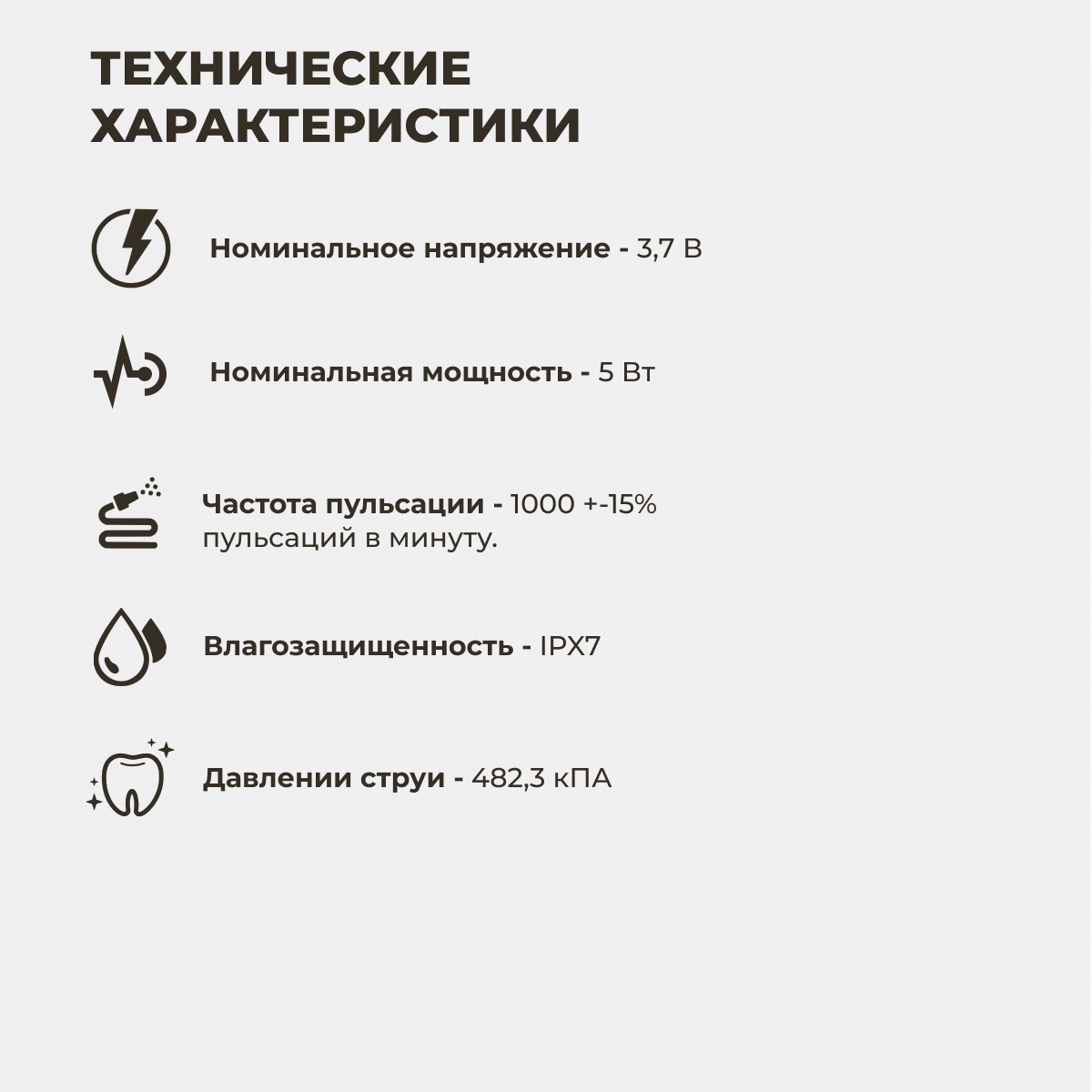 | Дополнительная информация | частота пульсации воды: 1000 импульсов/мин; время непрерывной работы: 30 мин. |