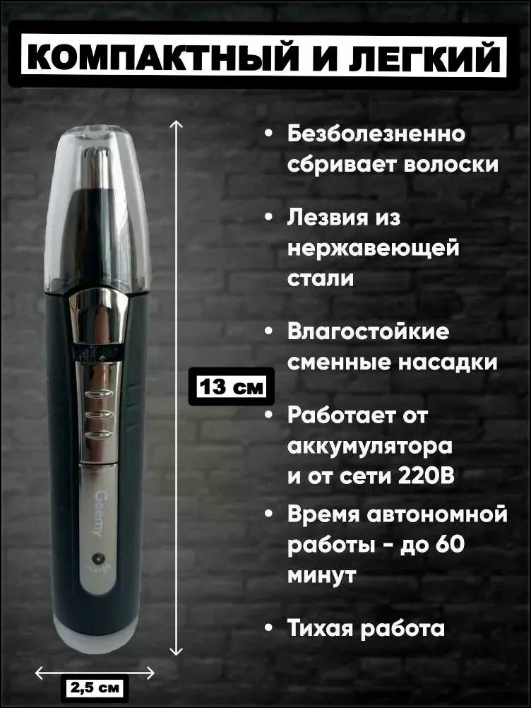 Триммер-бритва мужской 4в1 Geemy GM3116, аккум, 3для носа, ушей, подравнивания бородки