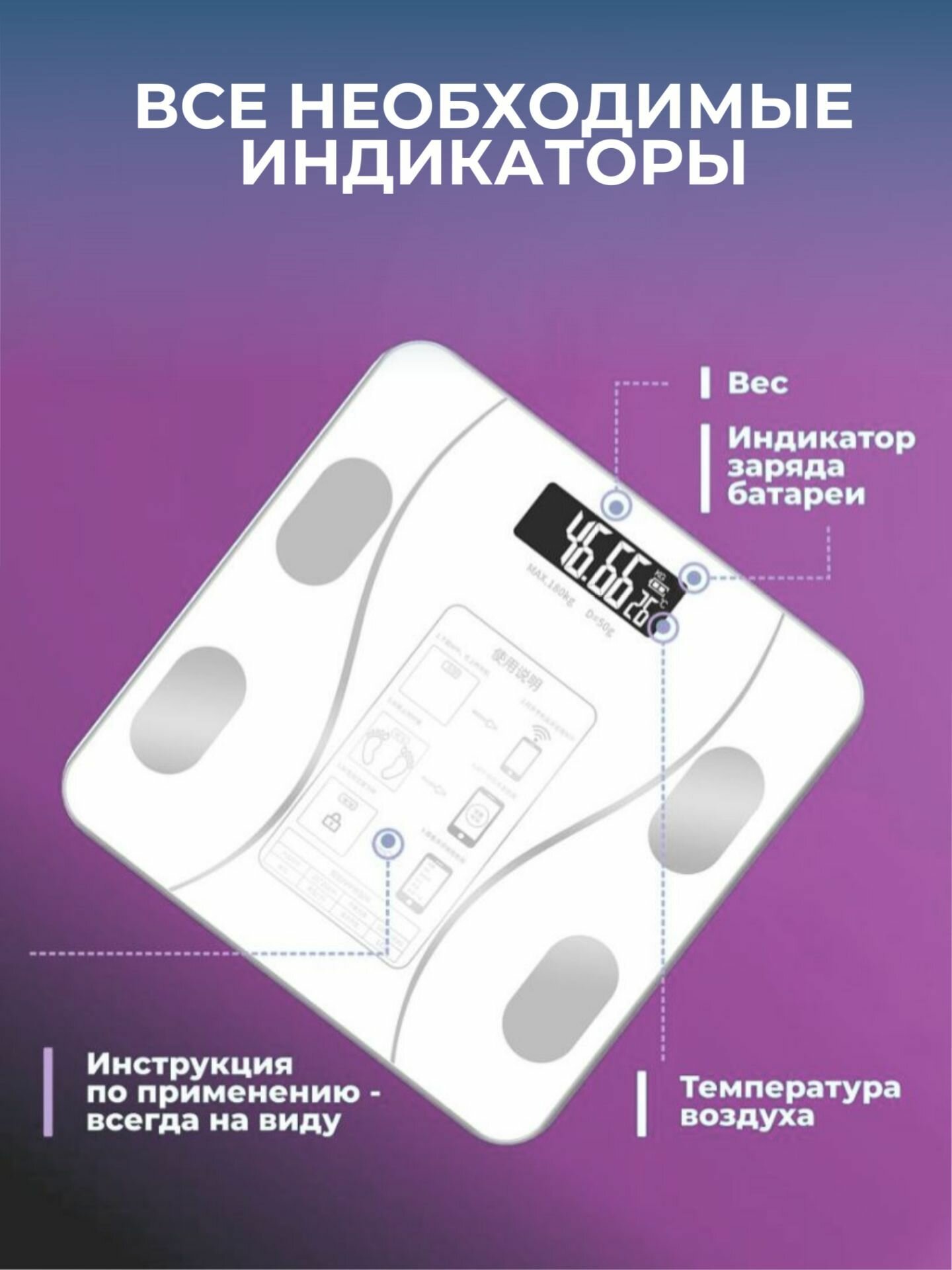 Купить Напольные умные весы c bmi / электронные весы с приложением для iPhone / Xiaomi / Android / iOS, белый