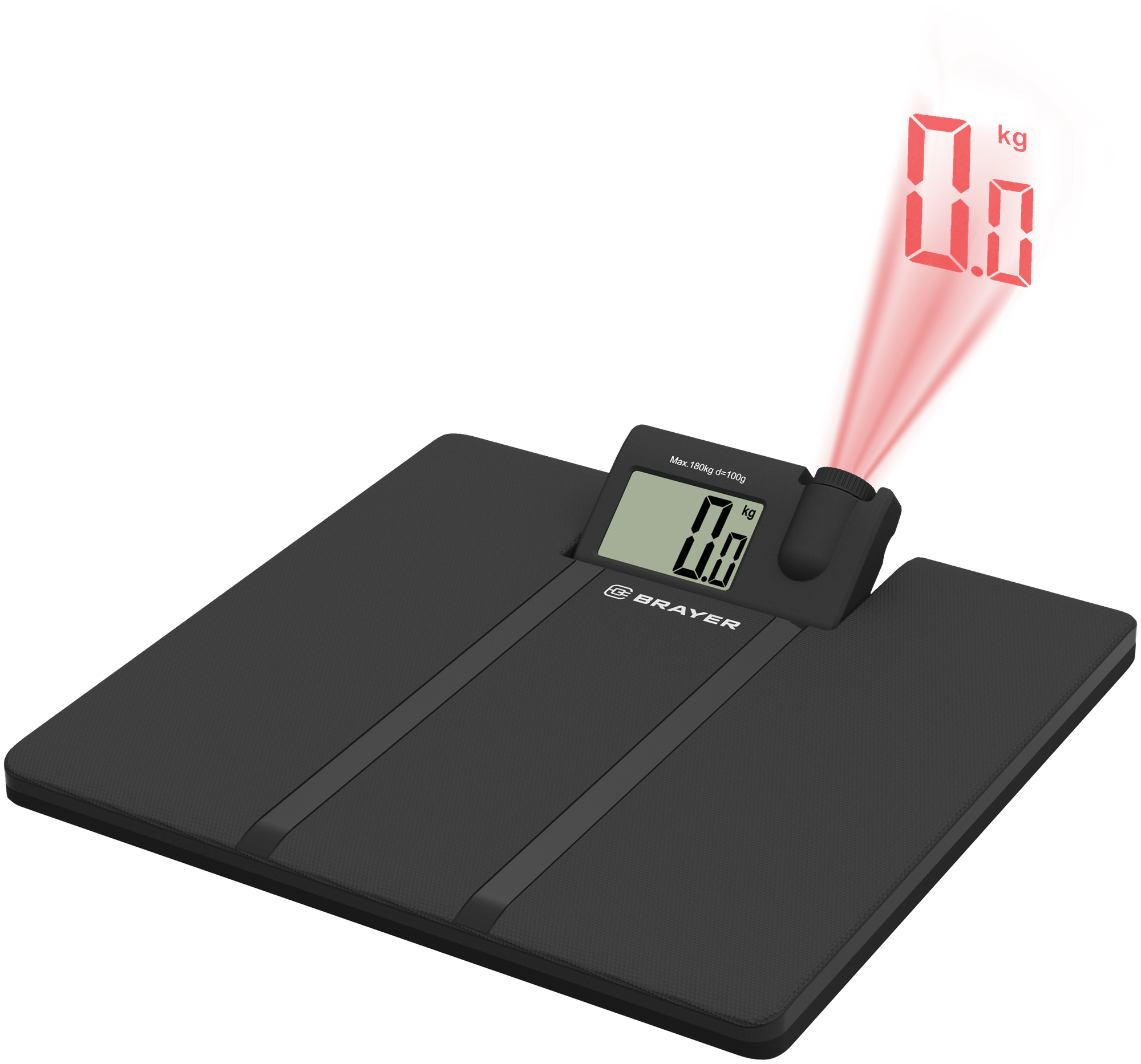 Весы напольные BRAYER 3736BR /до 180 кг, разм 33*32 см, диспл 62*40 мм, проектор, 4*АА 59992