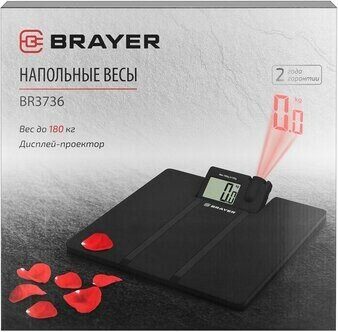 Весы напольные BRAYER BR3736, электронные, до 180 кг, 4хАА (не в комплекте), чёрные интересное: