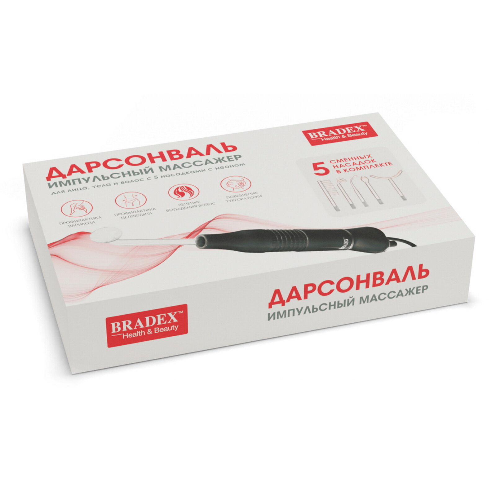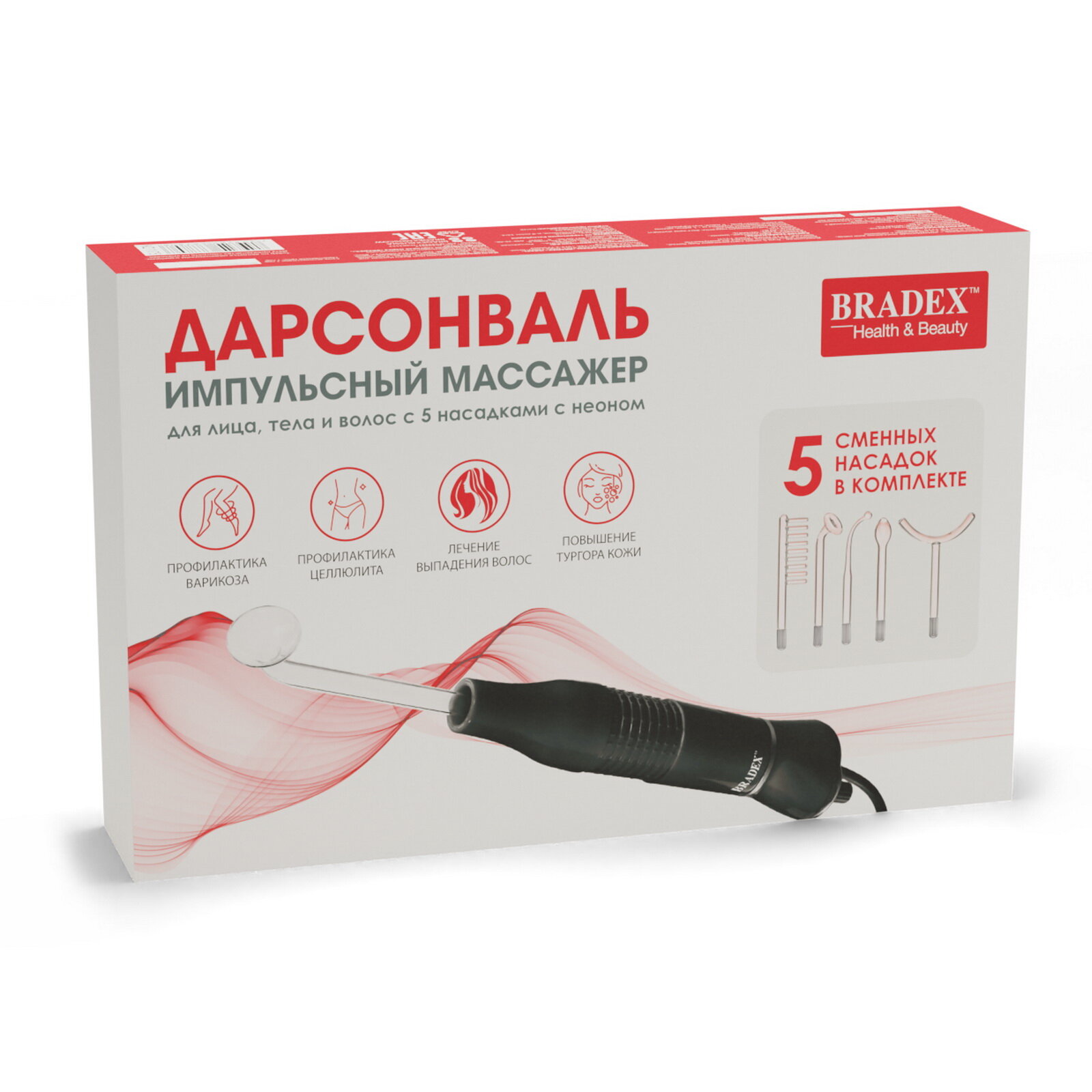 Массажер импульсный (дарсонваль) Bradex KZ 1175 с 5 насадками с Неоном, черный