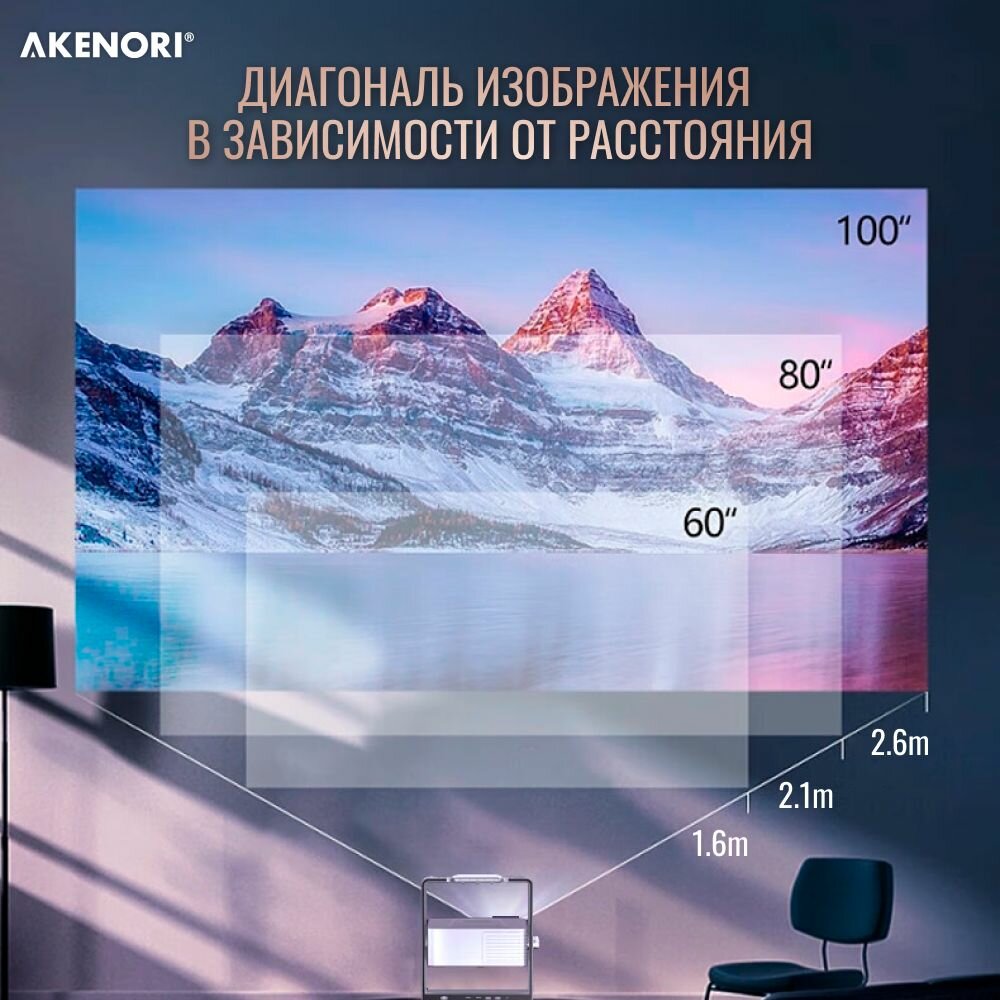 Проектор Akenori LED-330A, беспроводное подключение, диагональ 43-220", разрешение 1920x1080 Wi-Fi Android