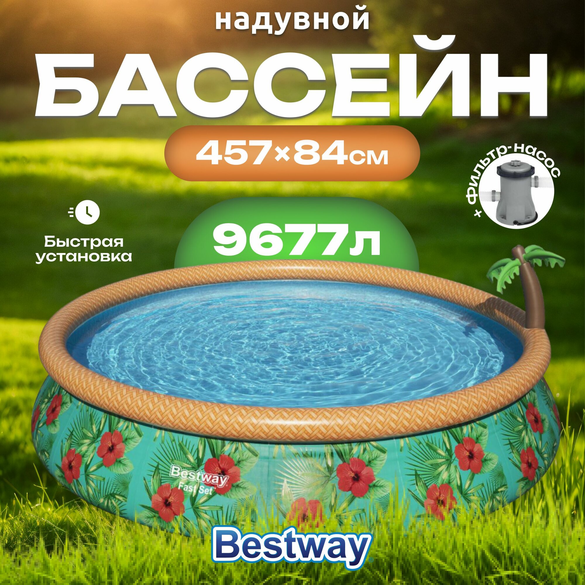 Круглый бассейн Fast Set Пальма 457х84 cм, 9677л, фильтр-насос 2006л/ч, Bestway, артикул 57416