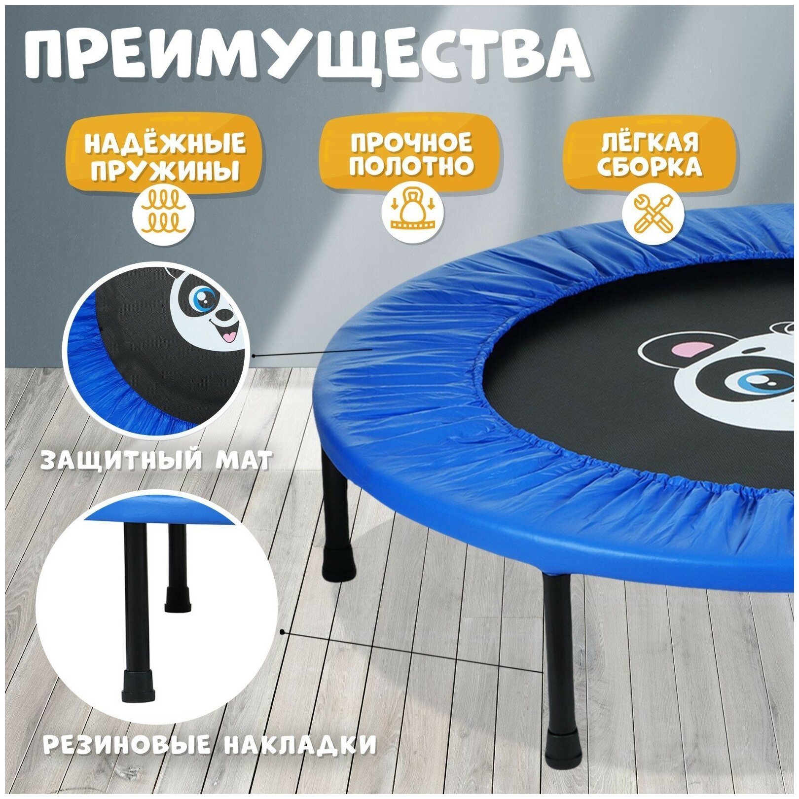 Батут "Панда", d 97 см, цвет синий