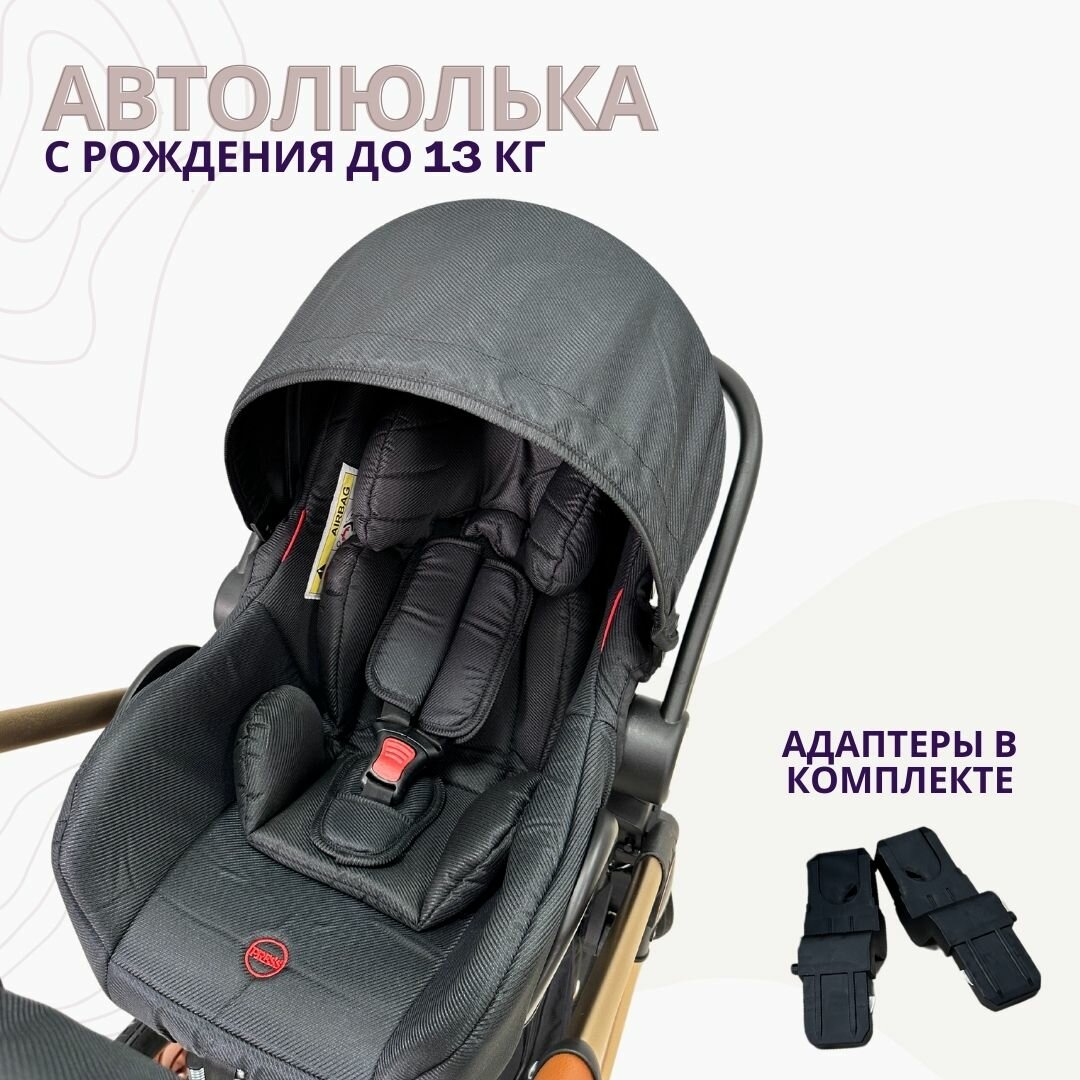 Детская коляска - трансформер Luxmom v9 3в1 коричневый, всесезонная, автолюлька