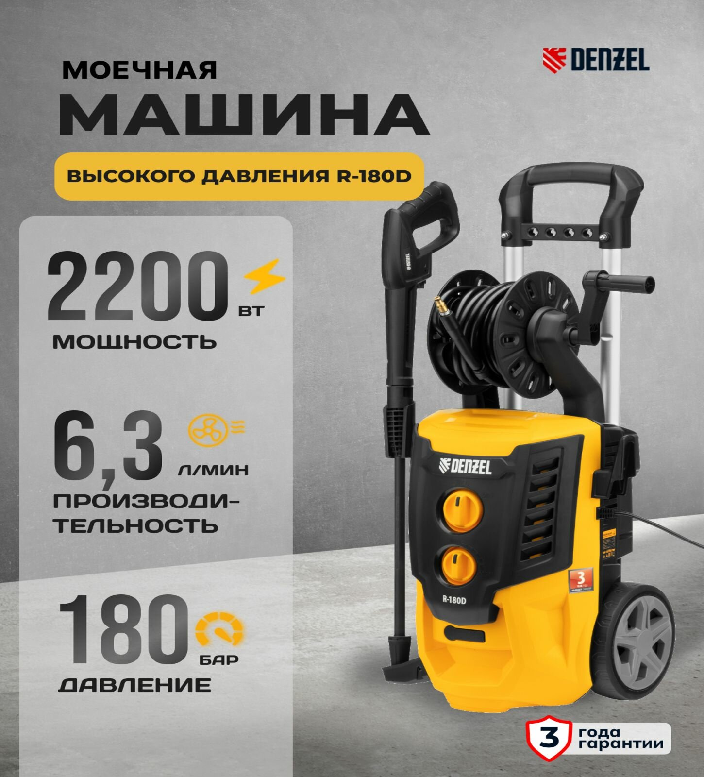 DENZEL 58239 Мойка DENZEL 2200Вт 380л/ч 180бар алюм помпа R-180D интересное: