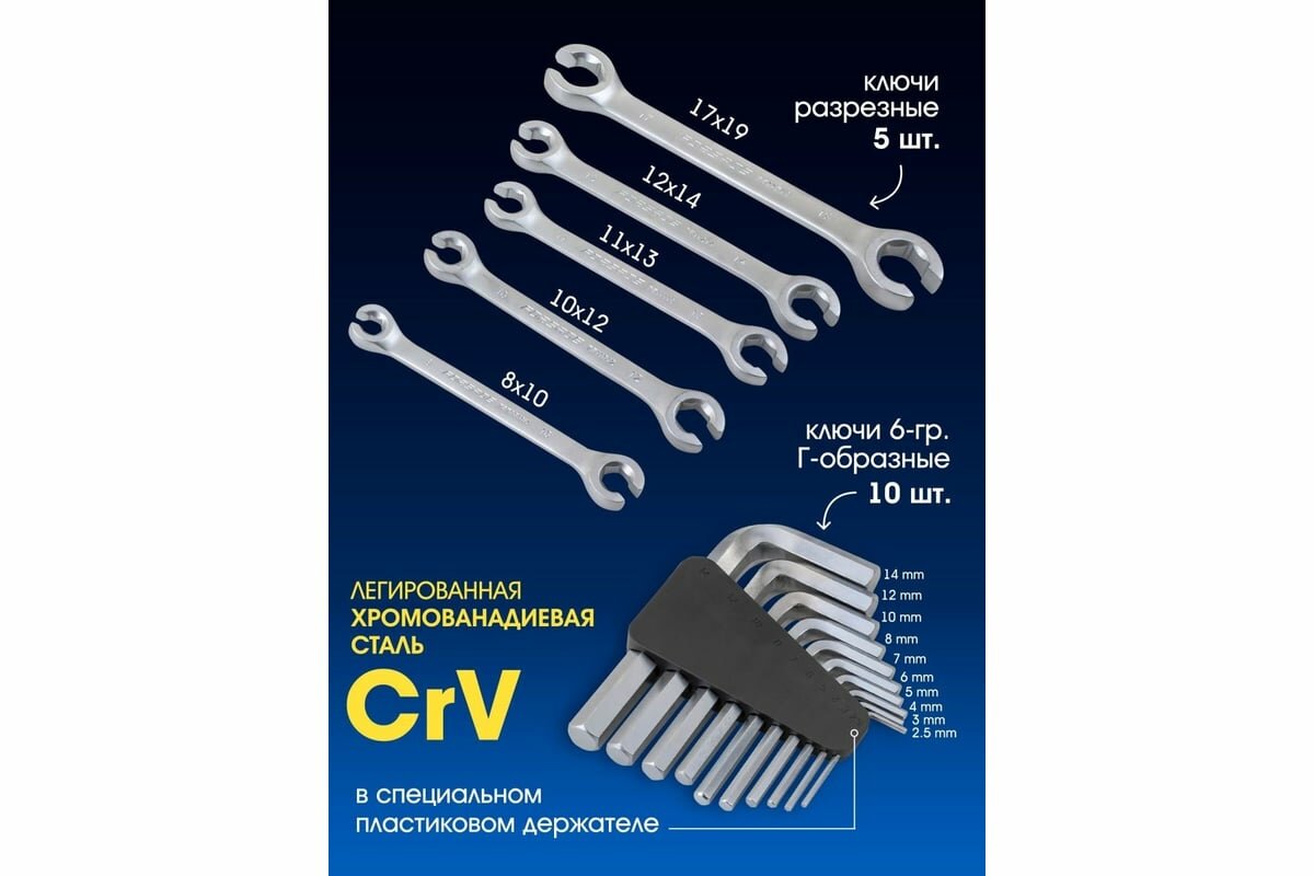 | Тип гаечных ключей | комбинированный / разрезной |