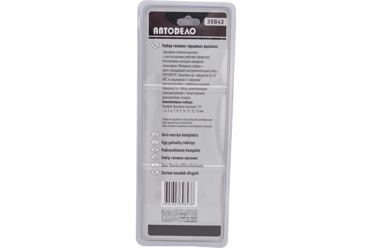 Набор высоких торцевых головок 10 шт. DR1/4, 4-13 мм, планка АвтоDело 39843 интересное:
