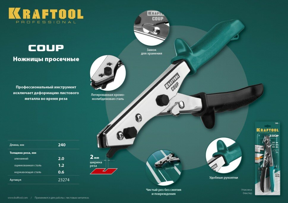 KRAFTOOL Ножницы просечные COUP для реза листа без повреждений, ( 23274 ) интересное: