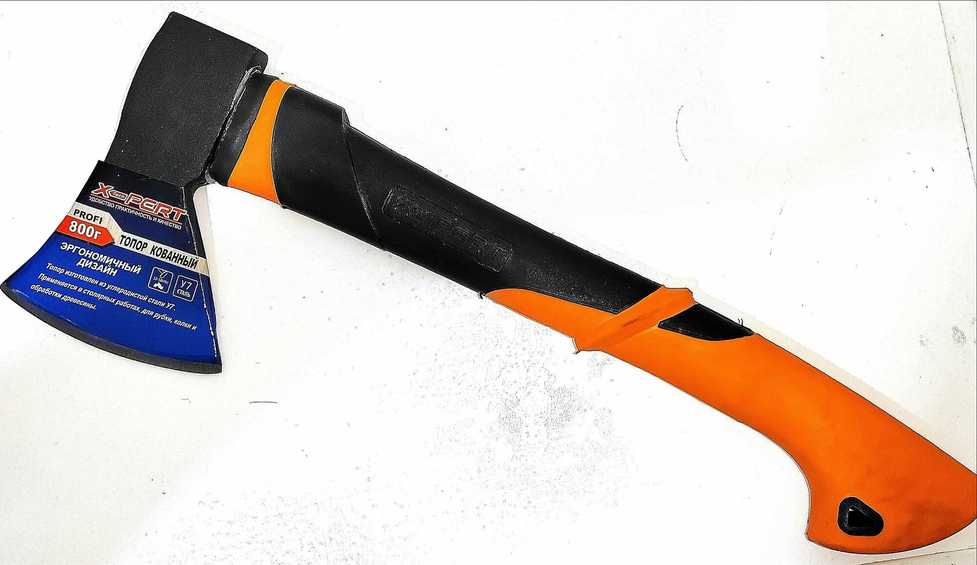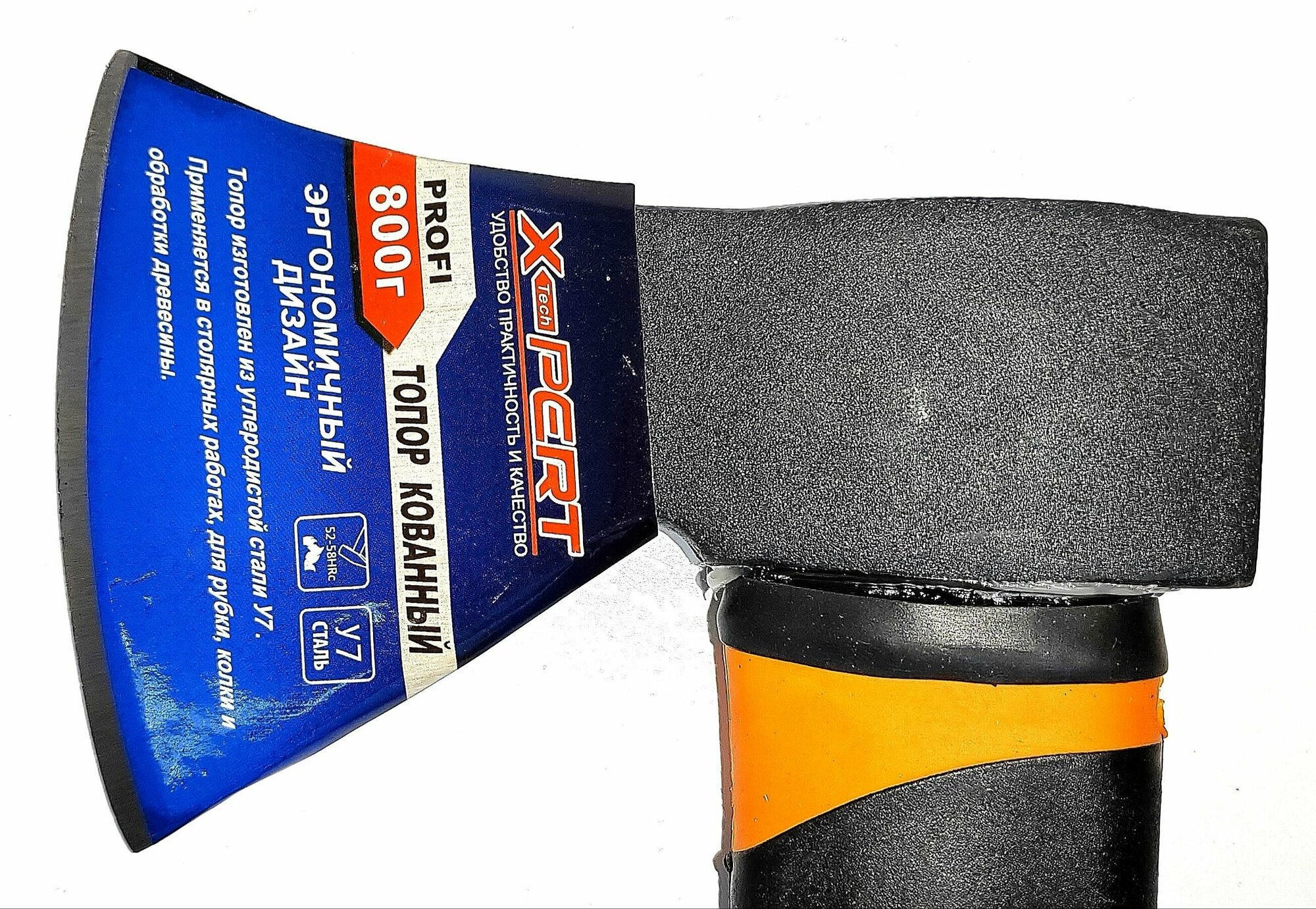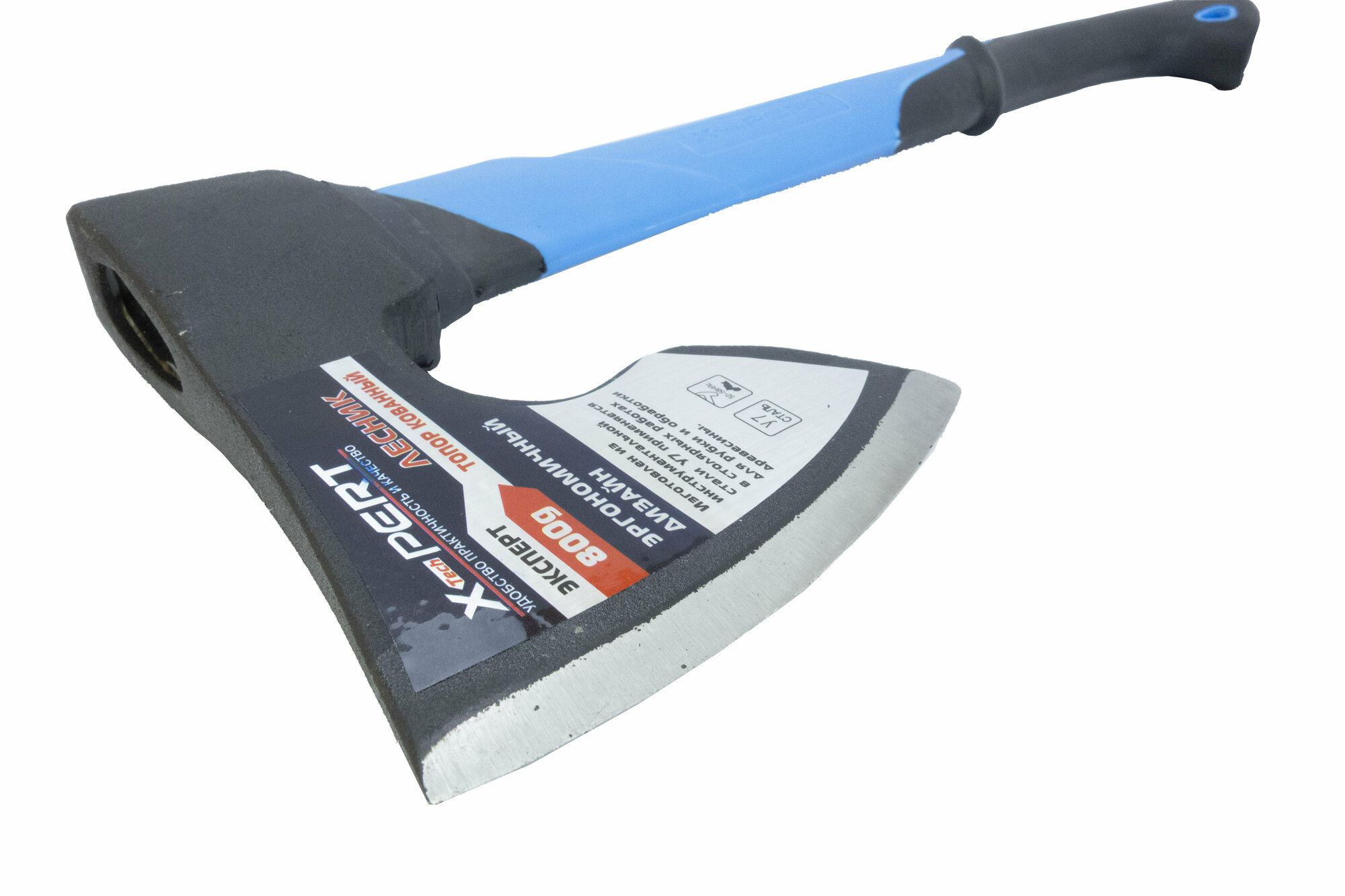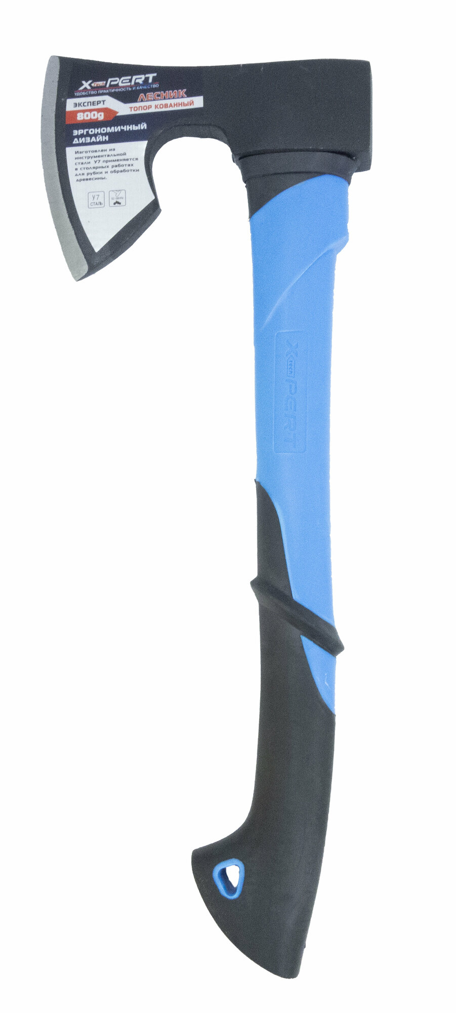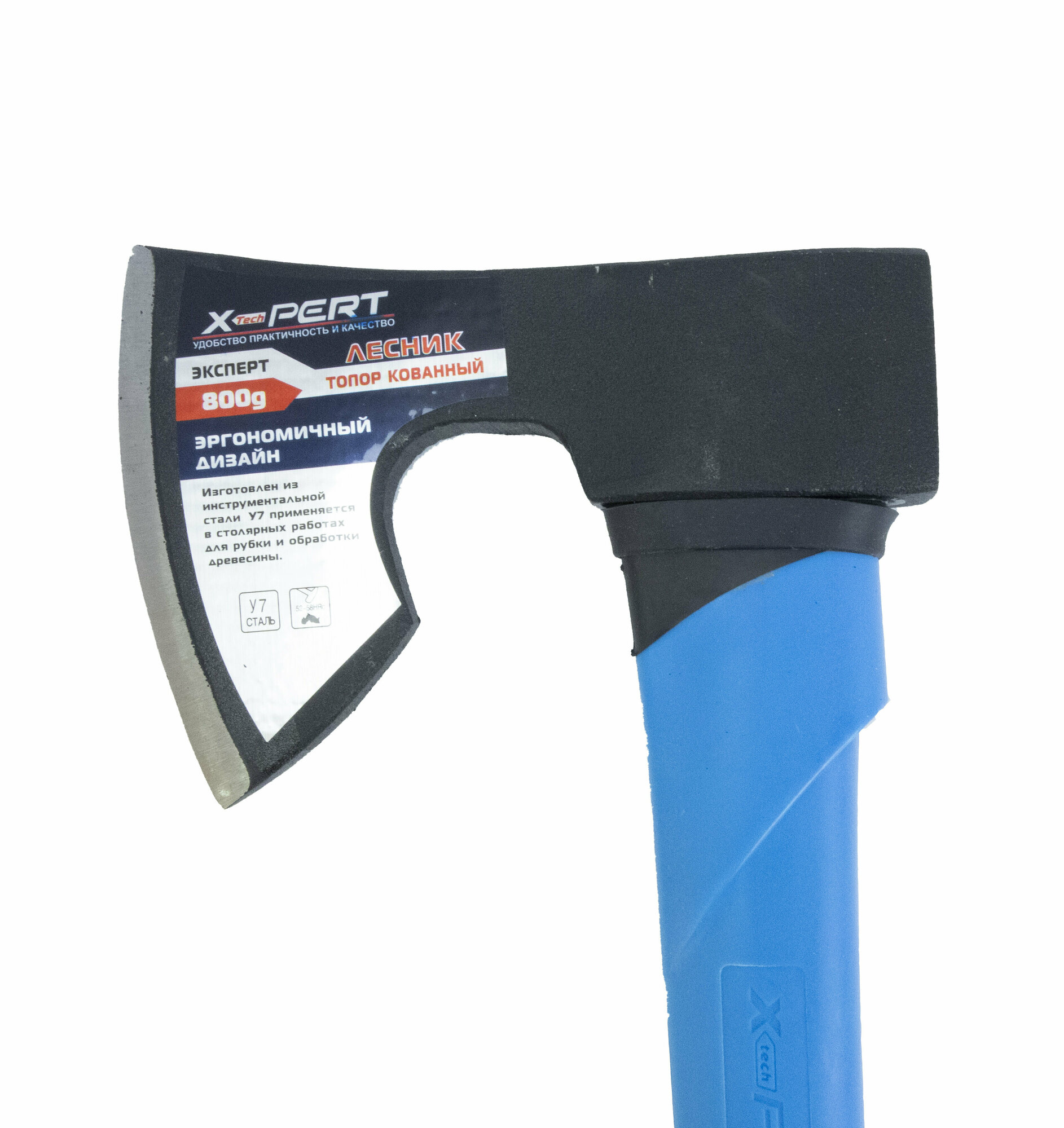 Топор кованый X-PERT "Лесник" 800 гр. с фиберглассовым обрезиненным топорищем (синий)
