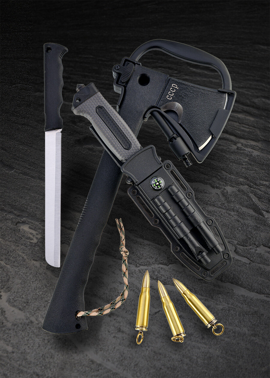 Купить Туристический набор, топор СССР 5в1 и нож туристический 4048А и вечная спичка Пуля