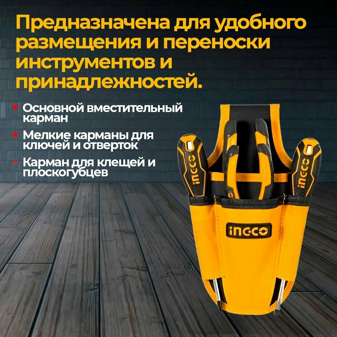 Сумка поясная для инструментов INGCO 4 кармана 240х130 мм интересное: