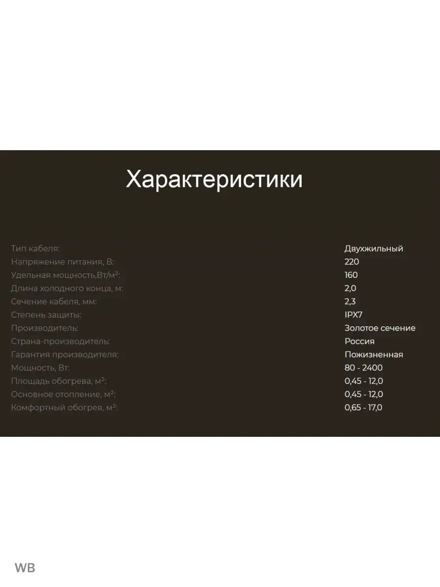 Теплый пол под плитку золотое сечение GS-2400 Вт-15.0 м.кв кабельный