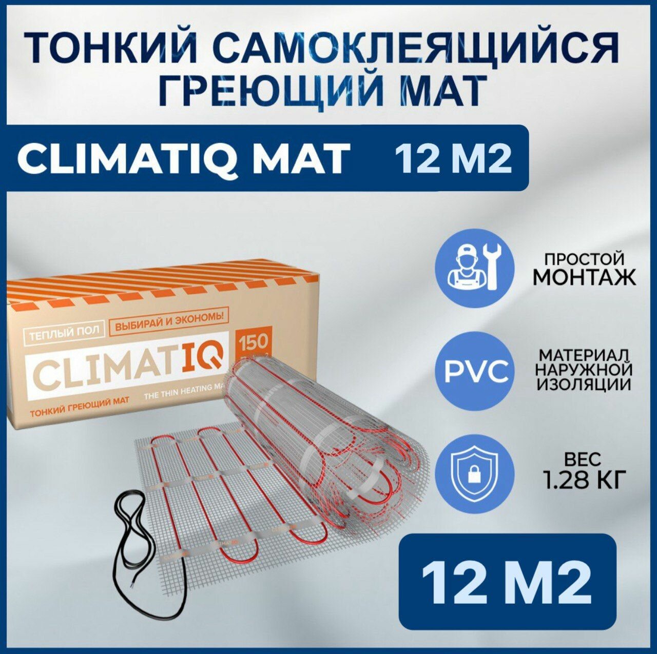 Тонкий самоклеящийся греющий мат CLIMATIQ MAT 12м2