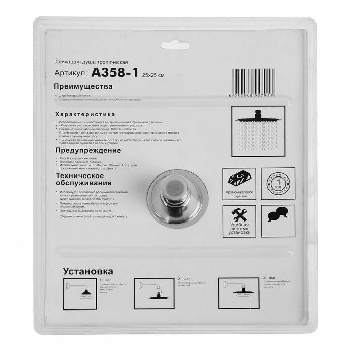 Купить Душевая лейка Accoona А358-1, тропическая, 25х25 см, нержавеющая сталь Accoona 7315304 .