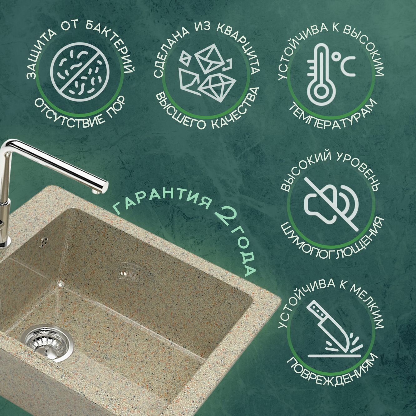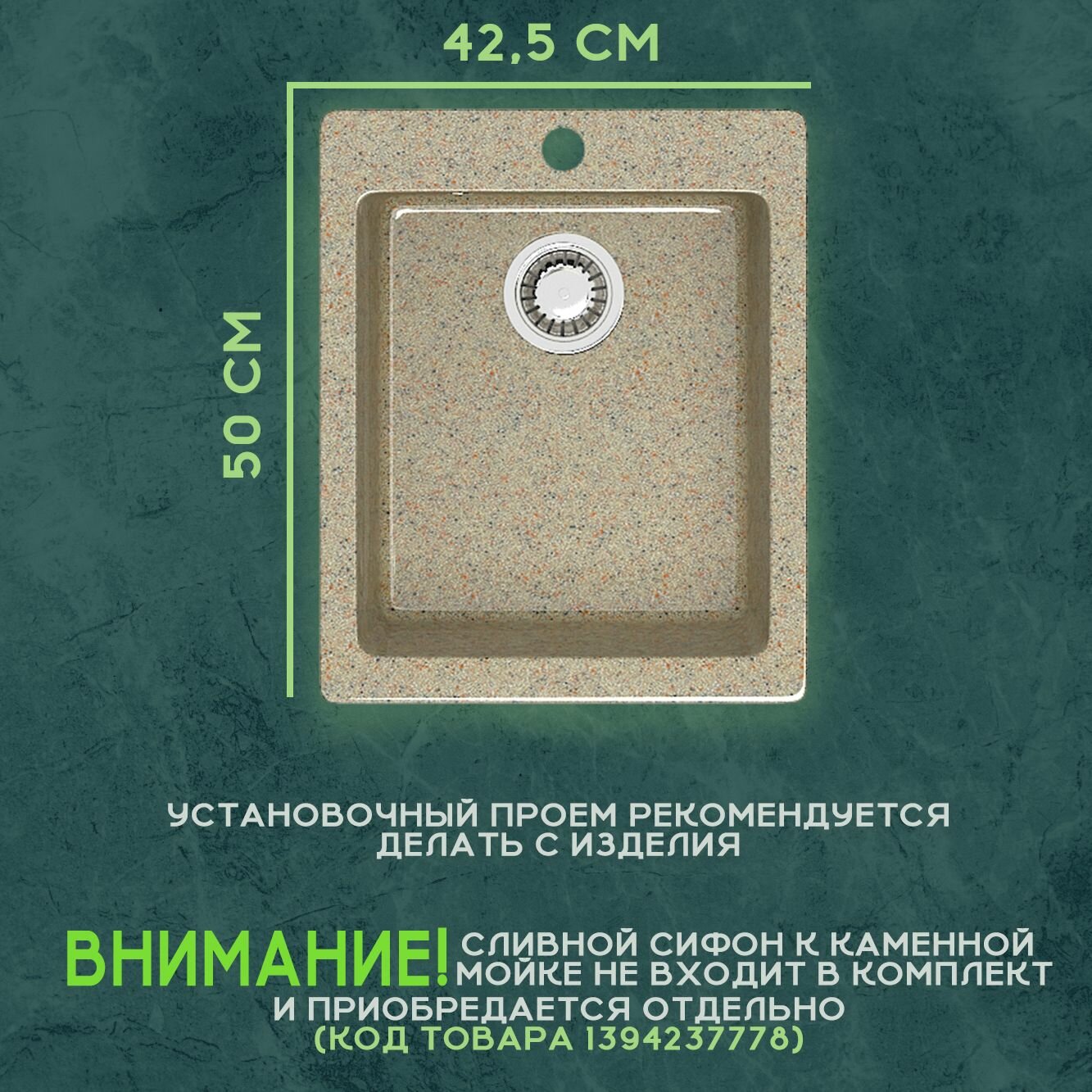 Мойка Раковина для кухни каменная врезная глянцевая Z8 без сифона, цвет песочный с блестками, 50*42,5*19,5 см BERGG ZETT lab