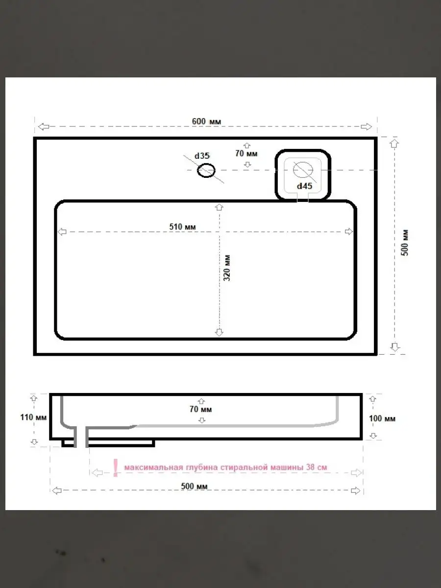 | Диаметр сливного отверстия | 45 мм |