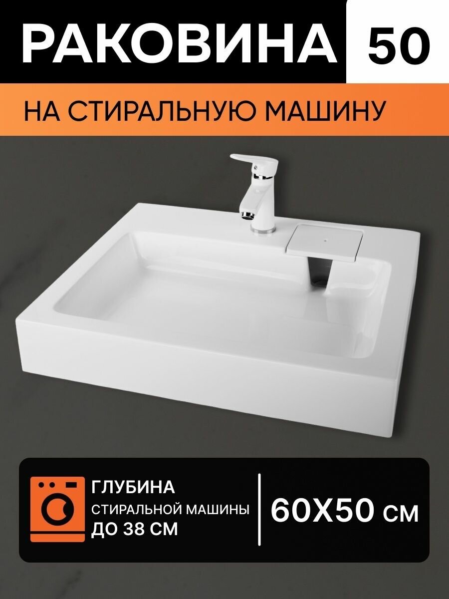 Раковина над стиральной машиной 60х60 Стандарт 60, цвет белый, литьевой мрамор