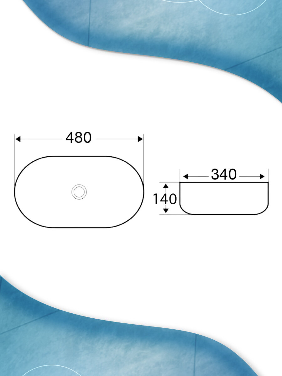 Раковина овальная накладная BAU Nimb 51х41, с отверстием под смеситель, белая