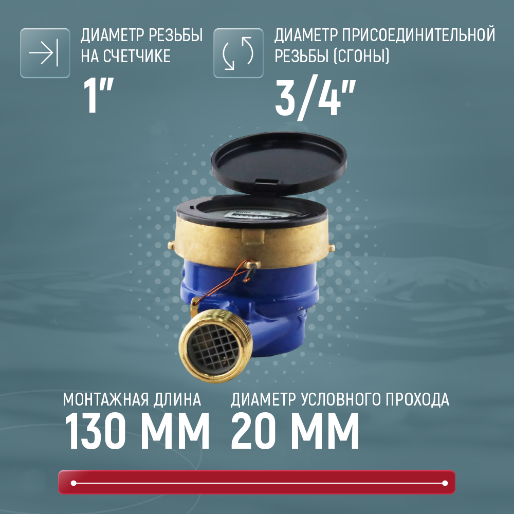 Счетчик для холодной воды мокроходный декаст ВКМ росич Ду 20 130 с КМЧ интересное: