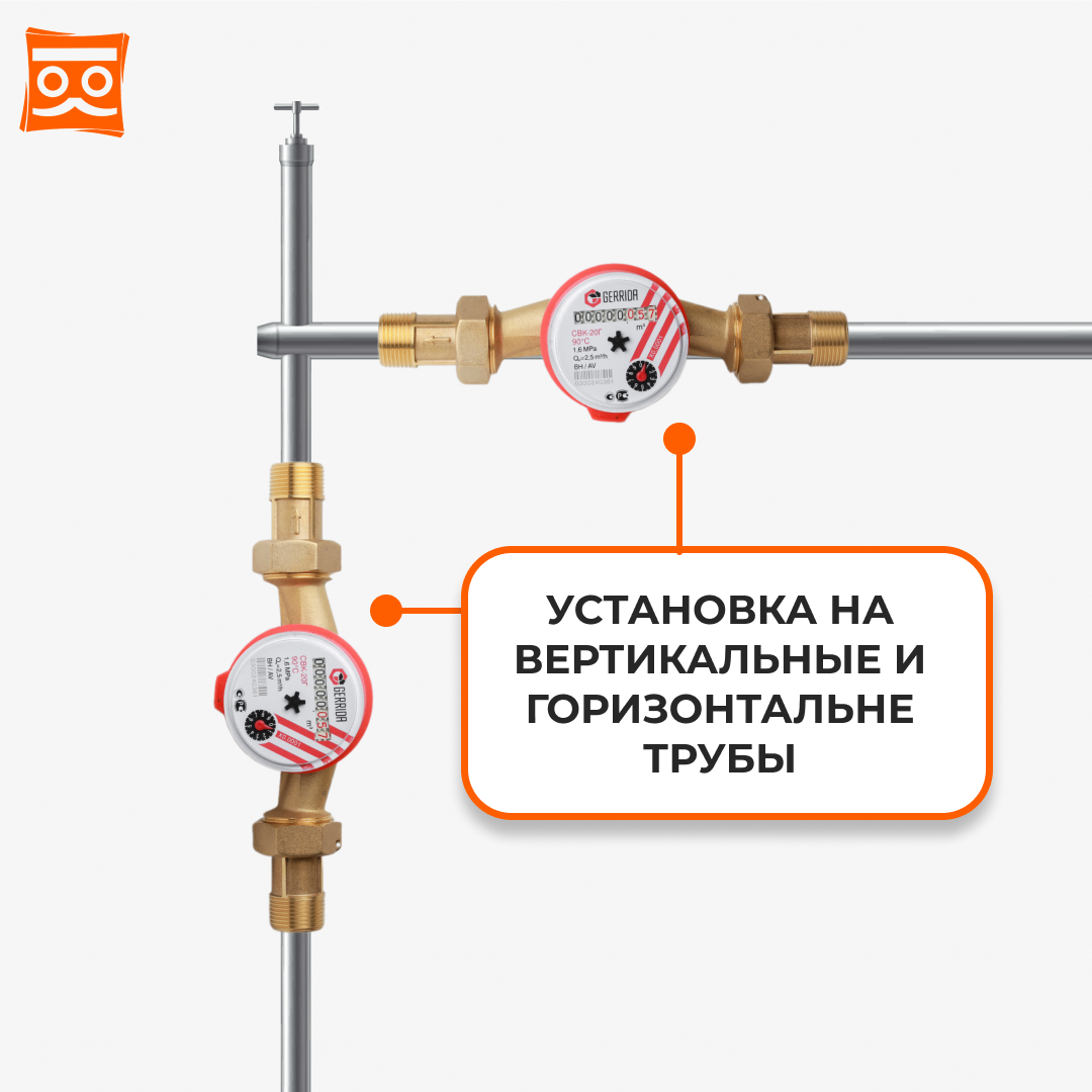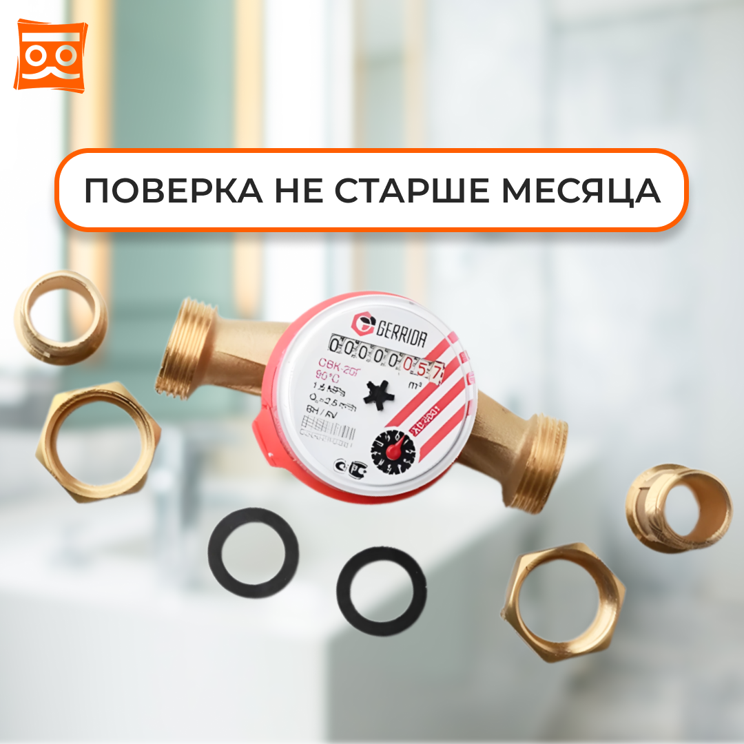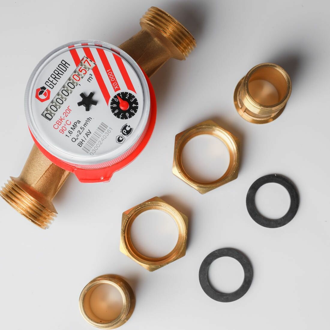 Счетчик для воды универсальный крыльчатый Gerrida СВК-20Г 3/4", 130 мм, с монтажным комплектом / Поверка Не старше 35 дней интересное: