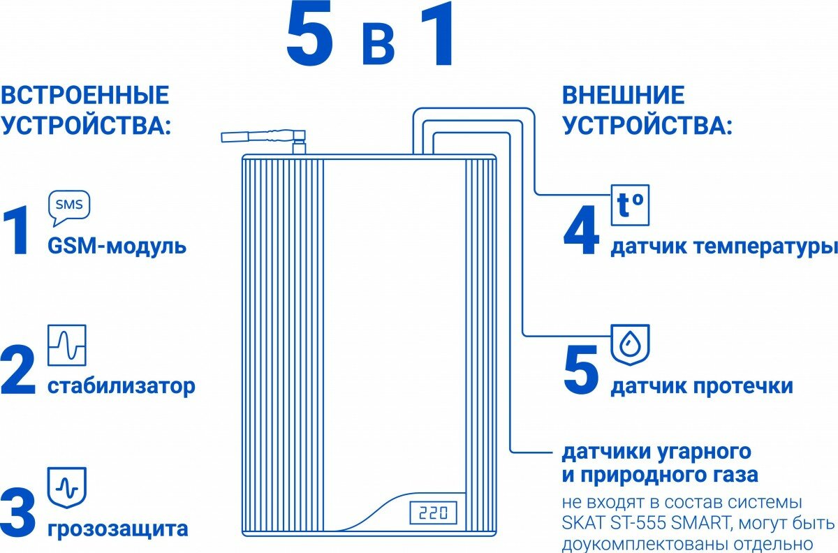 Система безопасности газового котла 5 в одном SKAT ST-555 SMART Бастион интересное: