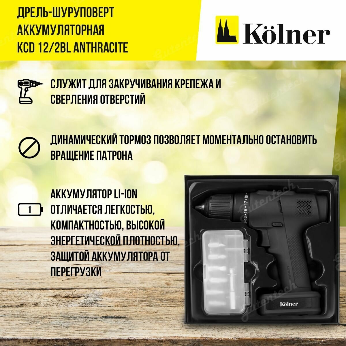 Аккумуляторный шуруповерт Kolner KCD 12/2BL ANTHRACITE (черный)