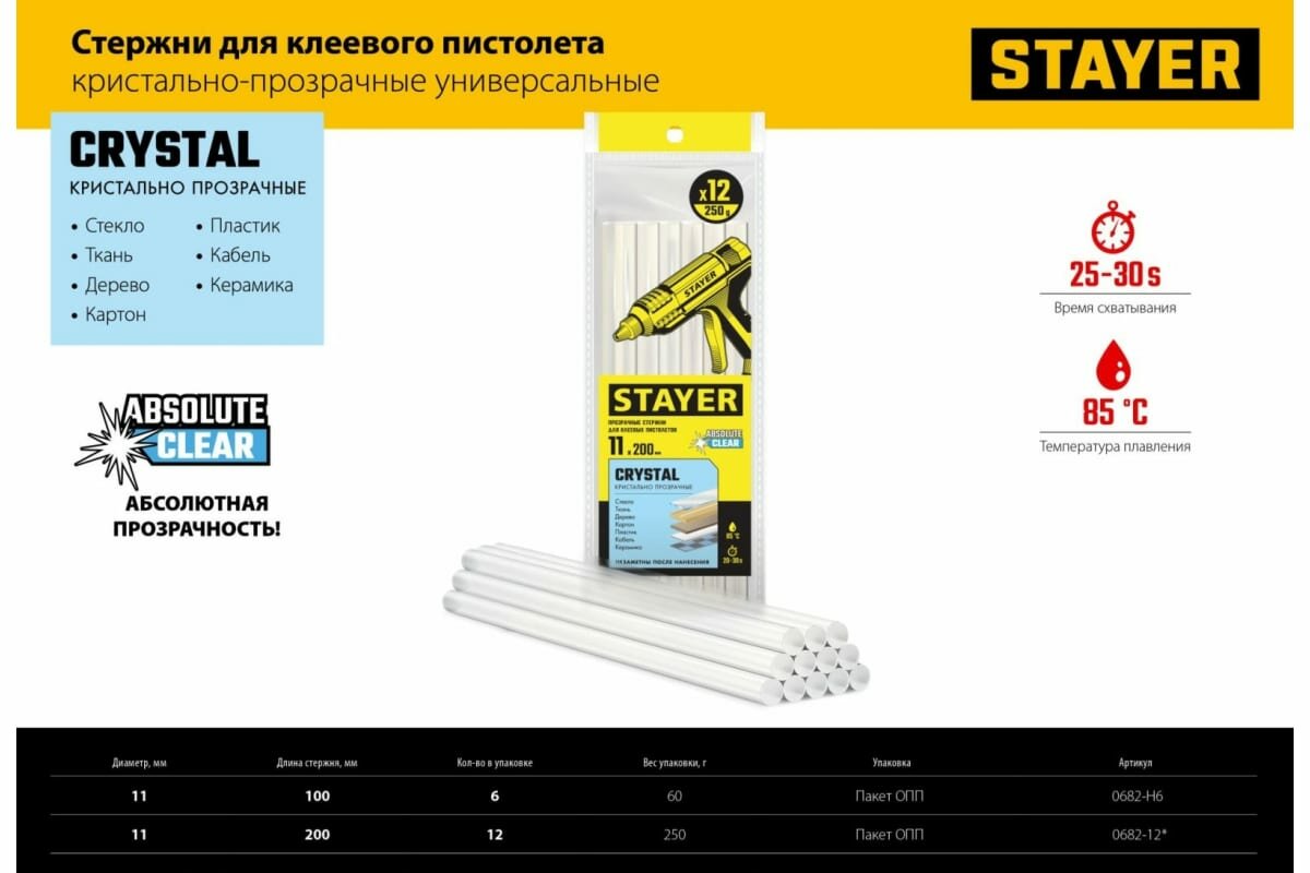 STAYER Cristal, 11 х 200 мм, 12 шт, прозрачные, универсальные клеевые стержни Professional (0682-12) интересное: