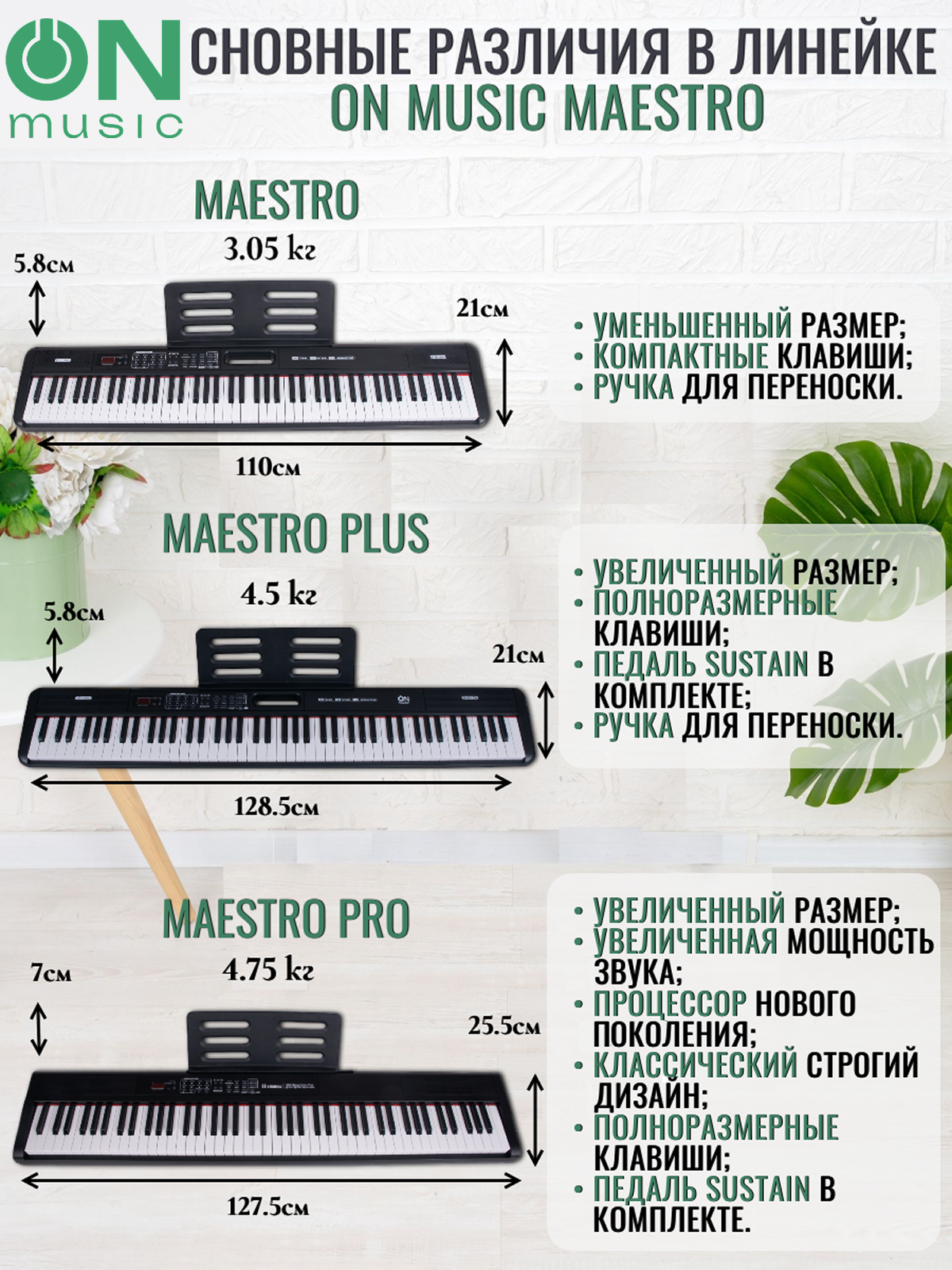 Цифровое пианино-синтезатор ON Maestro, 88 клавиш (компактные), черный интересное:
