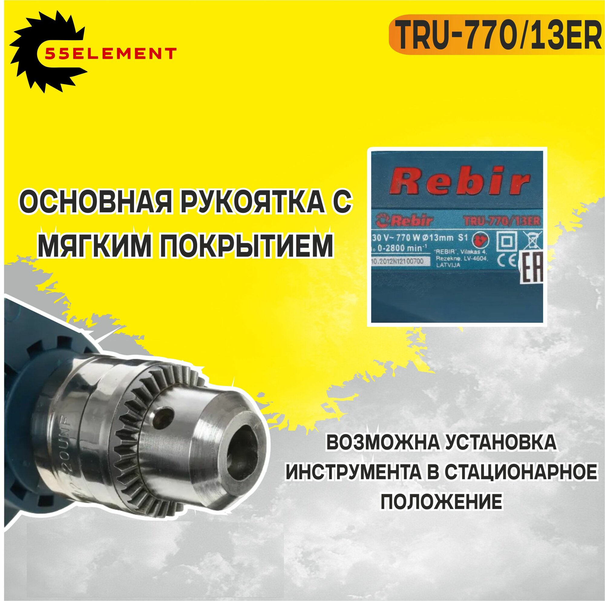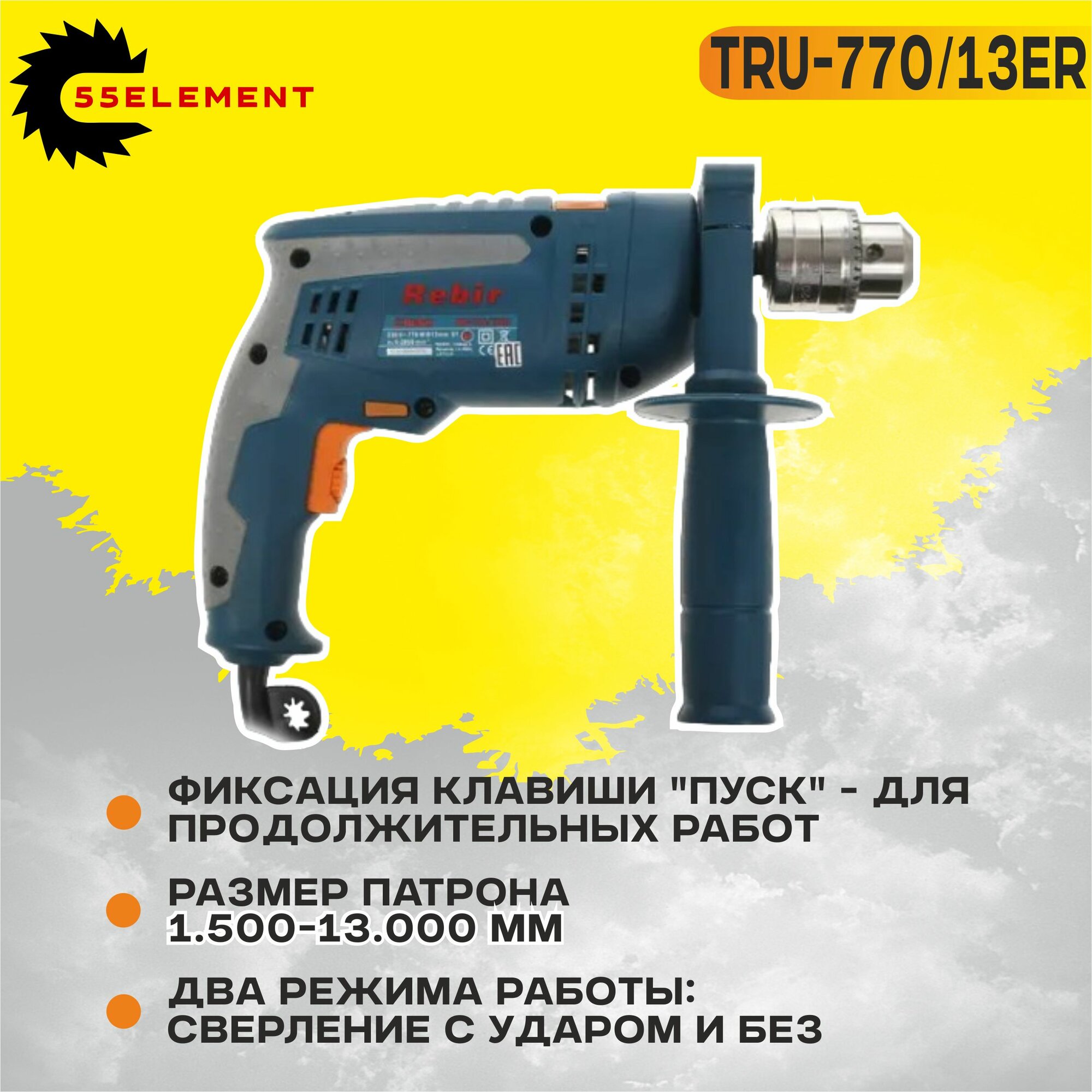 Ударная дрель Rebir TRU-770/13ER, 770 Вт интересное: