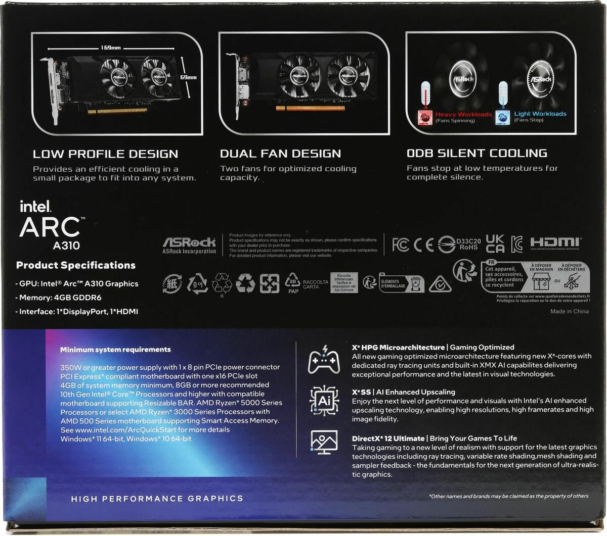 Видеокарта ASRock 4096Mb Intel Arc A310 Low Profile 4G (A310 LP 4G) 1xDP, 1xHDMI, Ret