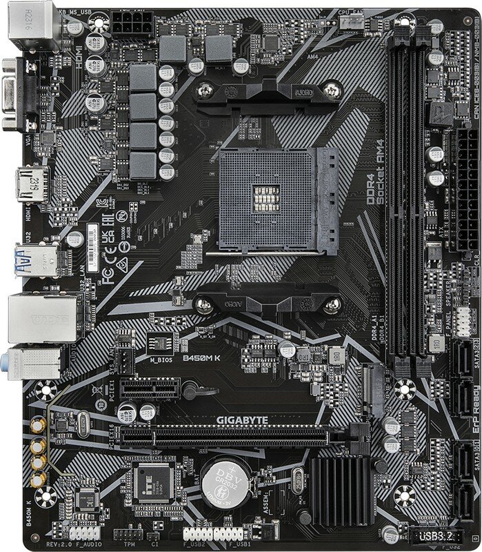 Материнская плата GIGABYTE B450M K (AM4/B450/2xDDR4/mATX/HDMI) (B450M K)