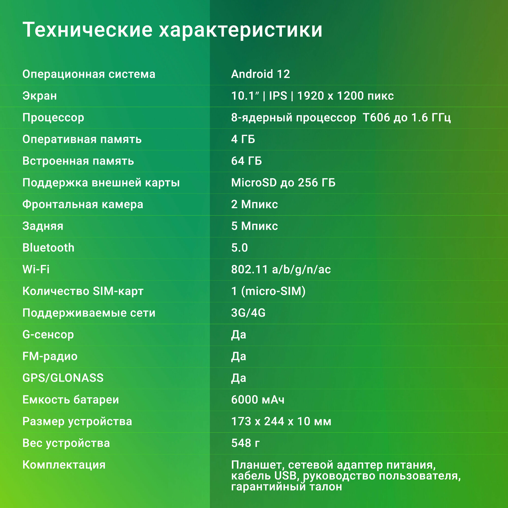 | Диагональ экрана | 10.1 |