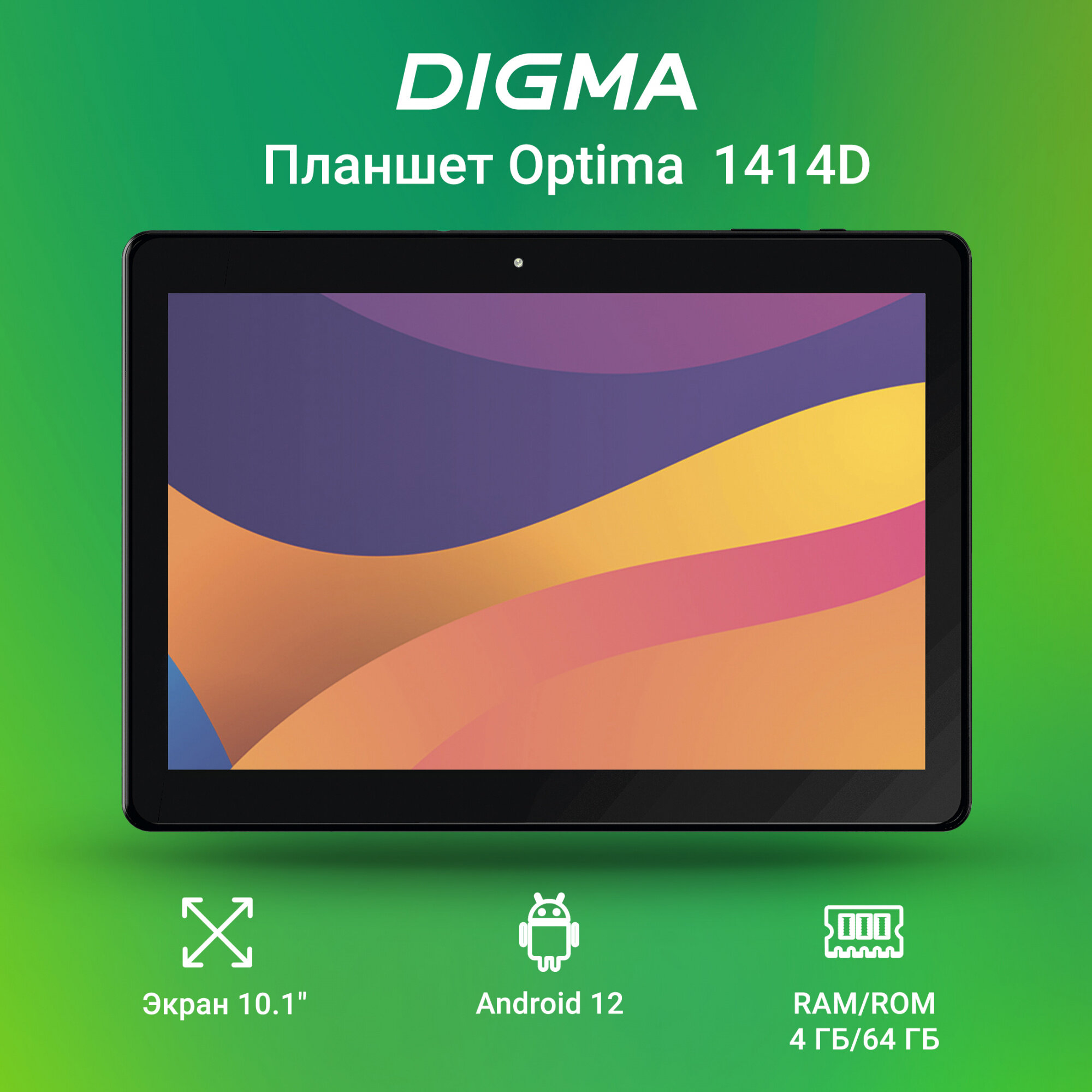 Планшет 10.1" Digma Optima 1414D 4G T606 4ГБ 64ГБ Android 12 WiFi LTE